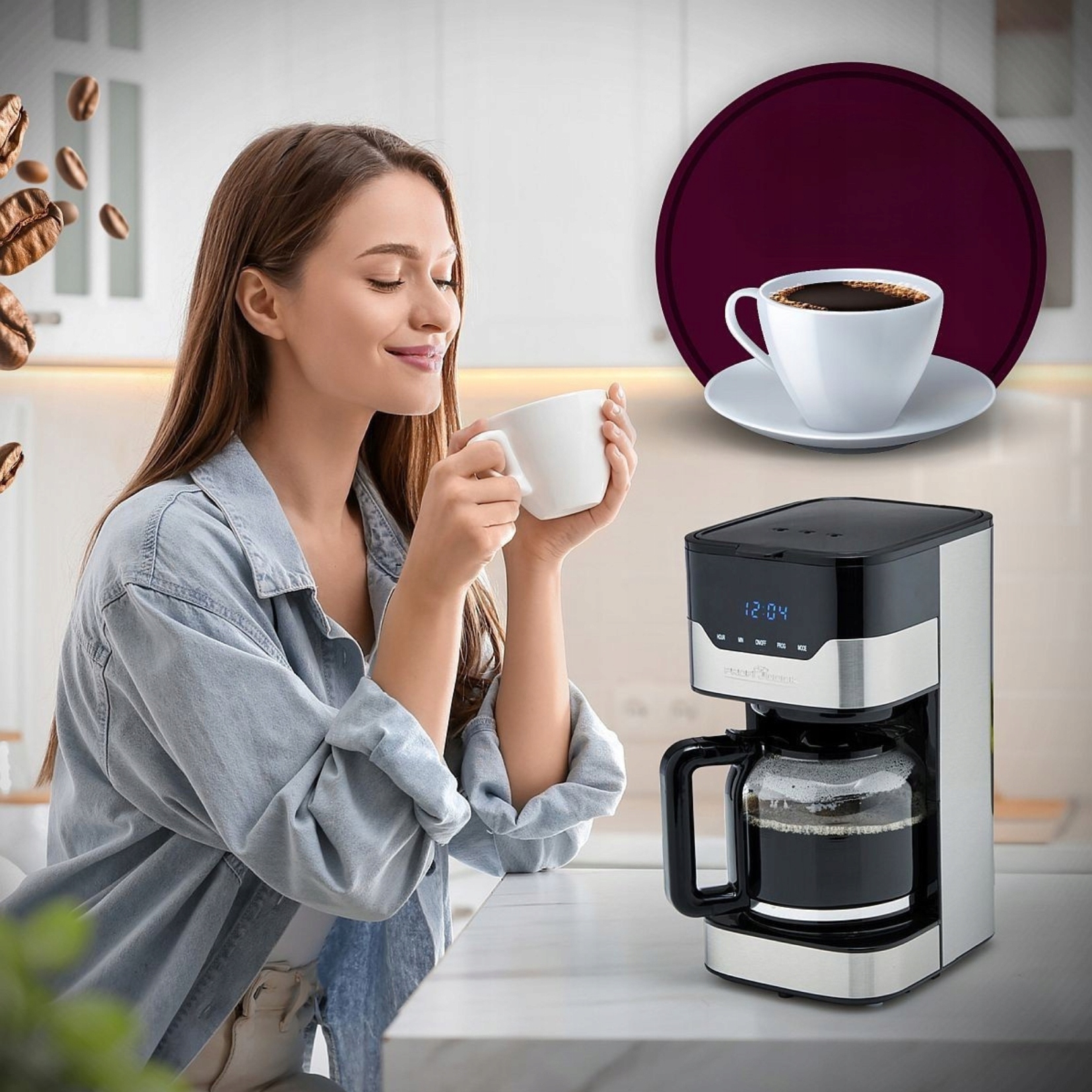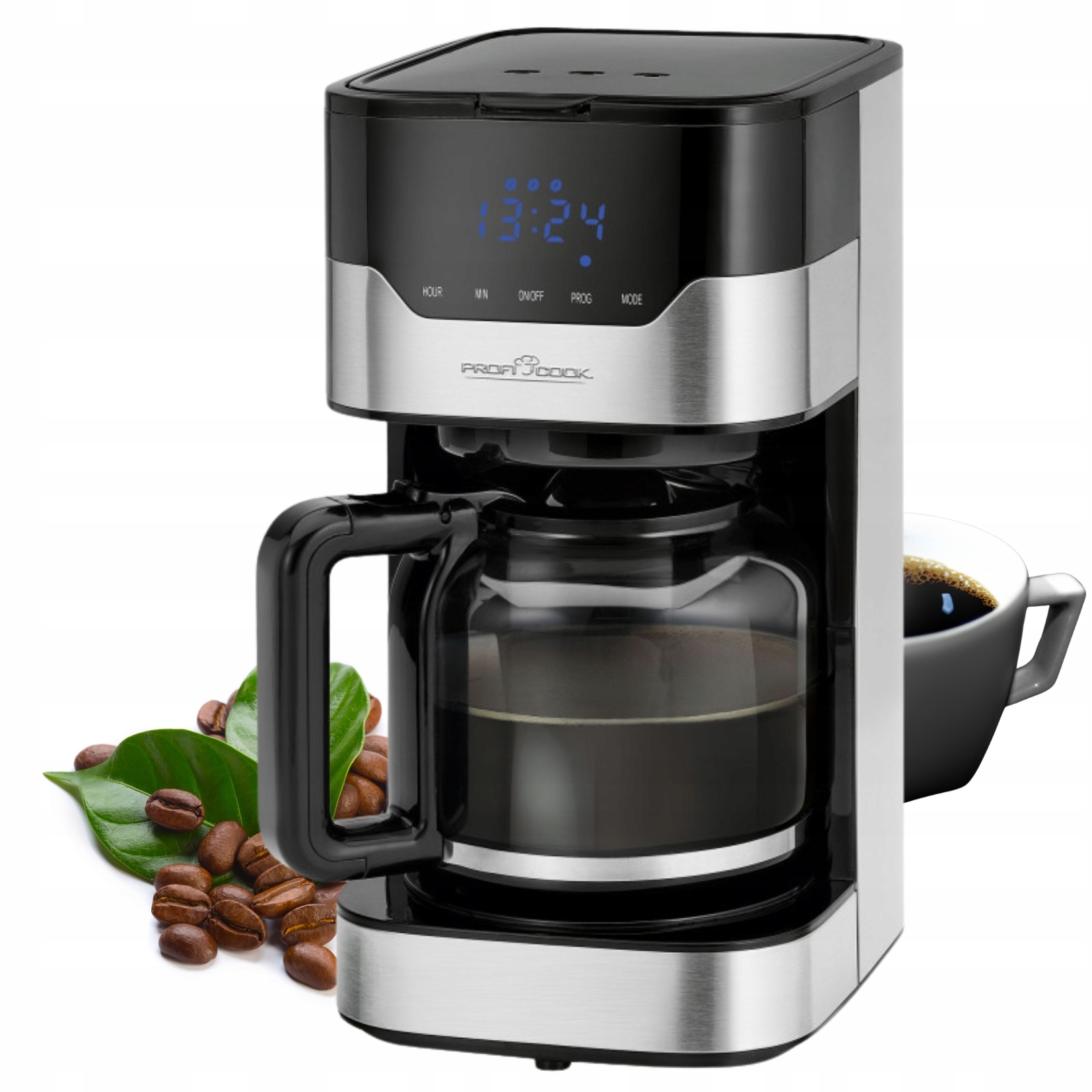 Свіжа тепла кава в горщику. Ви можете приготувати його за кілька хвилин завдякиProficook PC-KA 1196 з функцією інтенсивності аромату. Глечик 1,5 л вистачає на 12-14 чашок насиченої кави, яка не капає на розігріту тарілку. Цифрова сенсорна панель із годинником світиться синім кольором. 24-годинний таймер дозволяє програмувати пристрій.