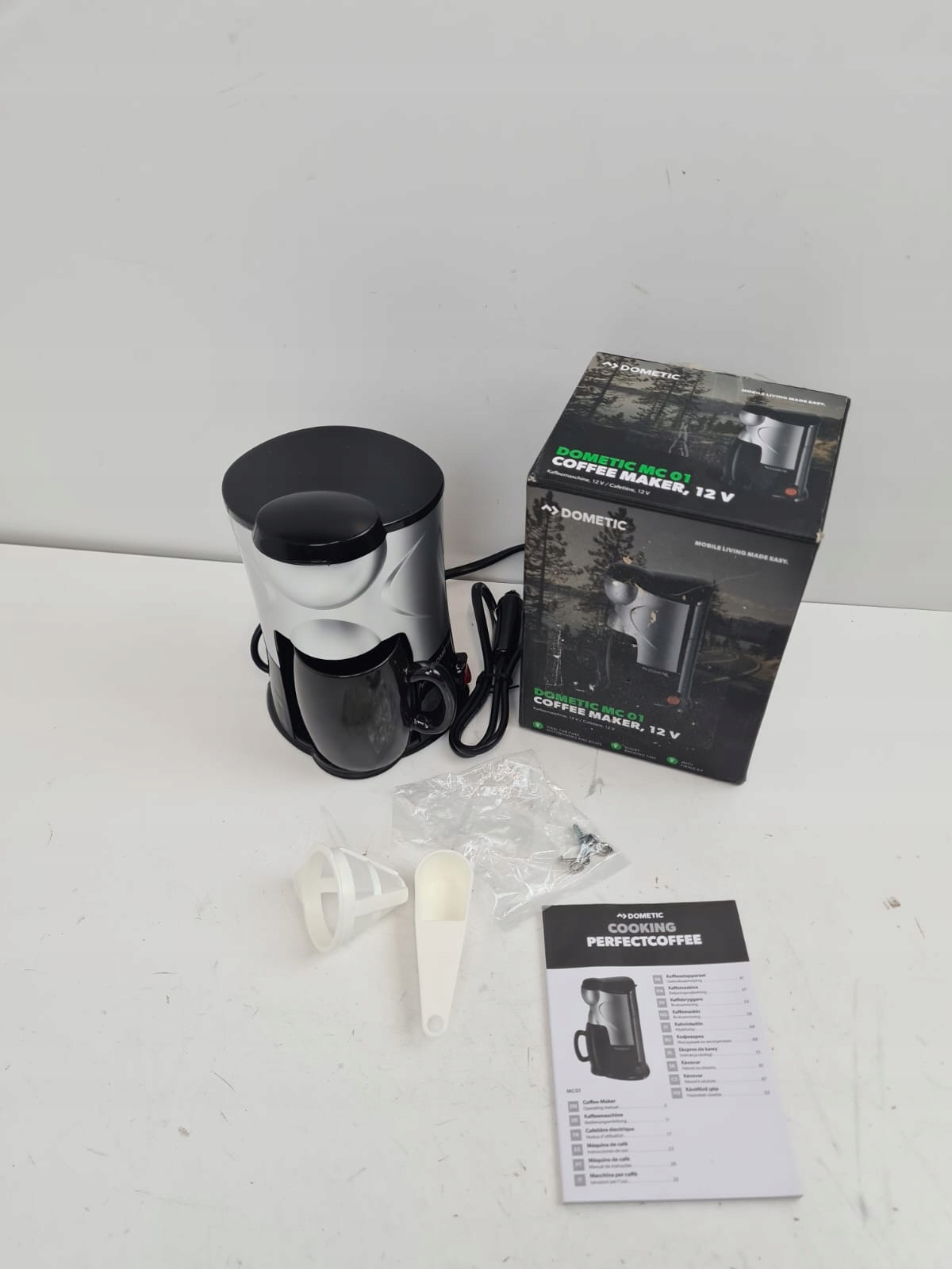 Кавоварка Dometic PerfectCoffee MC01 12 В — це компактний пристрій, розроблений для подорожей — ідеальний для кемперів, караванів, вантажівок і човнів. Він дозволяє зварити одну чашку кави (приблизно 150 мл) за короткий час, що робить його практичним рішенням у дорозі. Завдяки живленню 12 В постійного струму його можна безпосередньо підключити до гнізда прикурювача або електричної системи автомобіля. Має функцію захисту від сухого ходу, яка захищає пристрій від пошкодження у разі нестачі води. У комплект входить кріпильний кронштейн, який забезпечує стійкість кавомашини під час руху.