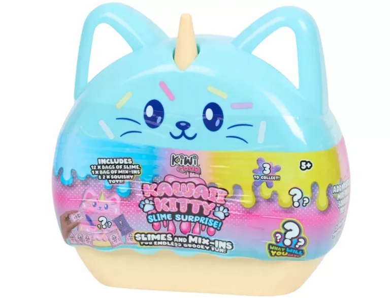- Відкрийте барвистий світ мулів із несподіванкою Kawai Kitty Slime! Ця чарівна котяча одиниця сповнена сюрпризів. Відкрийте упаковку, і ви знайдете 12 пакетів для завантаження, 4 мішки з аксесуарами та 2 м'якими фаршированими тваринами. Змішайте, замісіть і розважайтеся нескінченно, створюючи власні, унікальні творіння.