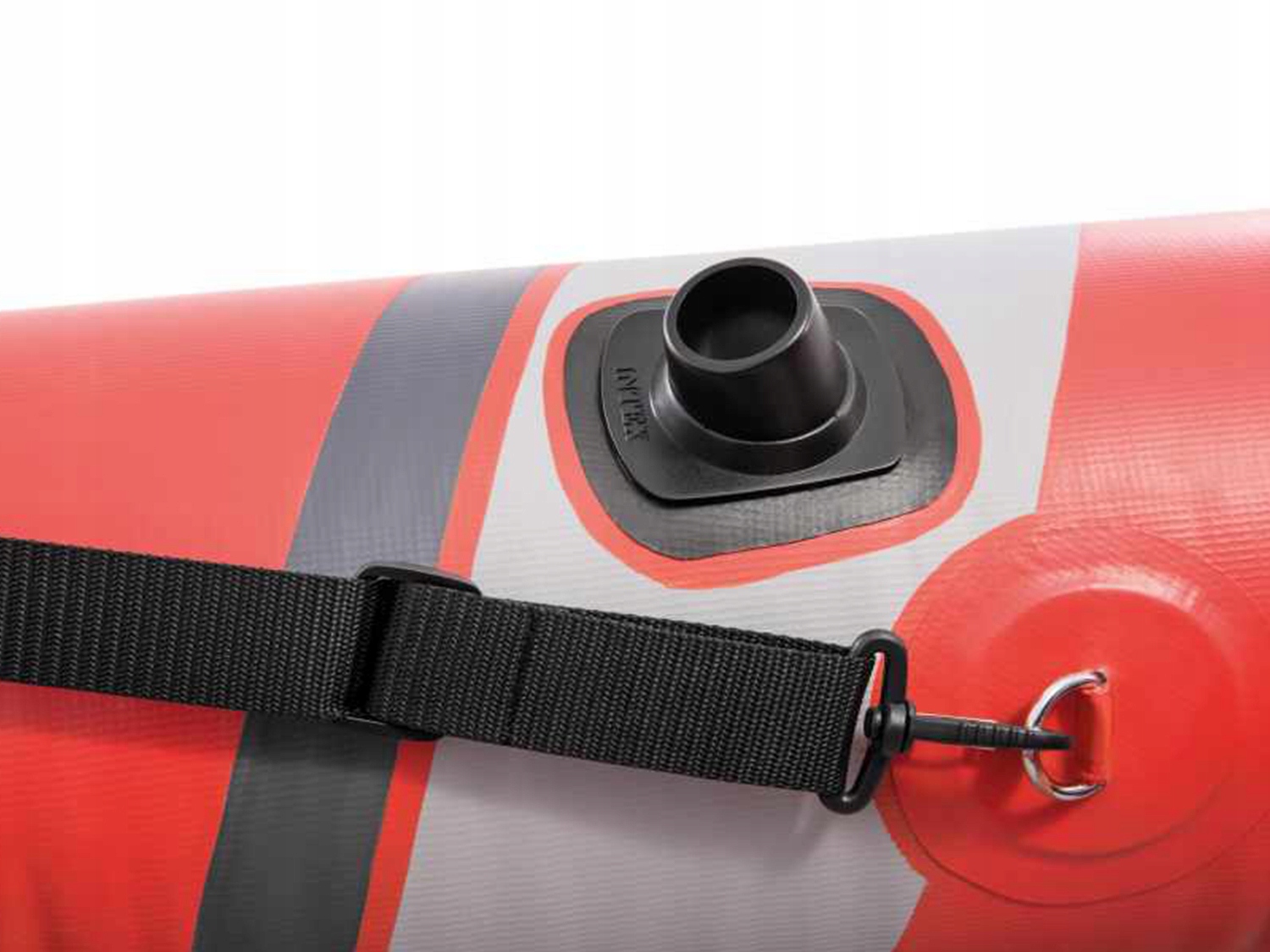 Розрахований на 2 особи, з регульованими сидіннями та спинкою, веслами на 2 особи та насосом, він дозволить швидко відправитися до води в спекотні дні. Модель для любителів рибної ловлі з тримачами для вудилищ і кронштейном для кріплення GPS або ехолота. Змінний кіль різної глибини, відсік для зберігання в передній частині байдарки, ручки для перенесення, підставки для ніг, задня кришка багажного відділення та утримуючий трос доповнюють функціональні переваги байдарки.
