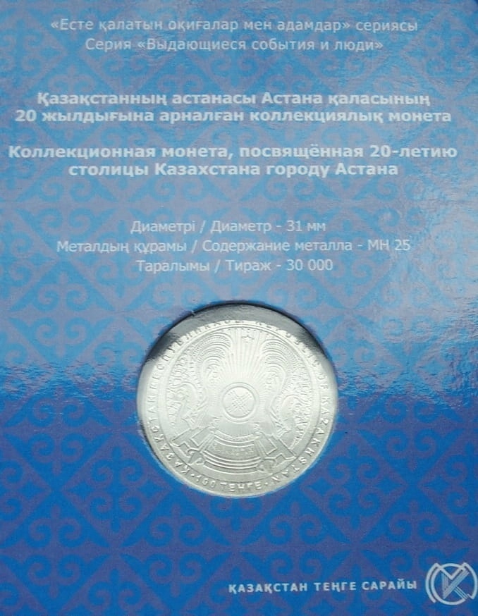Оплачивая «Казахстан 100 тенге 20 років Астана 2018» данный товар из каталога «Азия», вы можете получить дополнительную скидку 4%, если произведете 100% предоплату. Размер скидки вы можете увидеть сразу при оформлении заказа на сайте. Внимание!!! Скидка распространяется только при заказе через сайт.