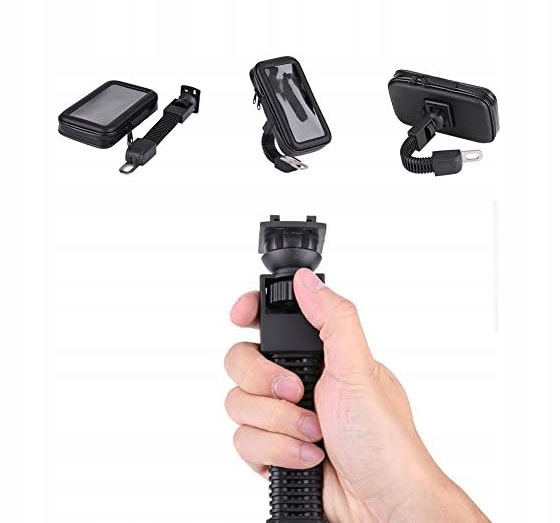 водонепроникний корпус, прикріплений до дзеркала по телефону , а ручка в одному - незамінний аксесуар для кожного ентузіаста їзди на мотоциклі, скутері або квадроциклу.