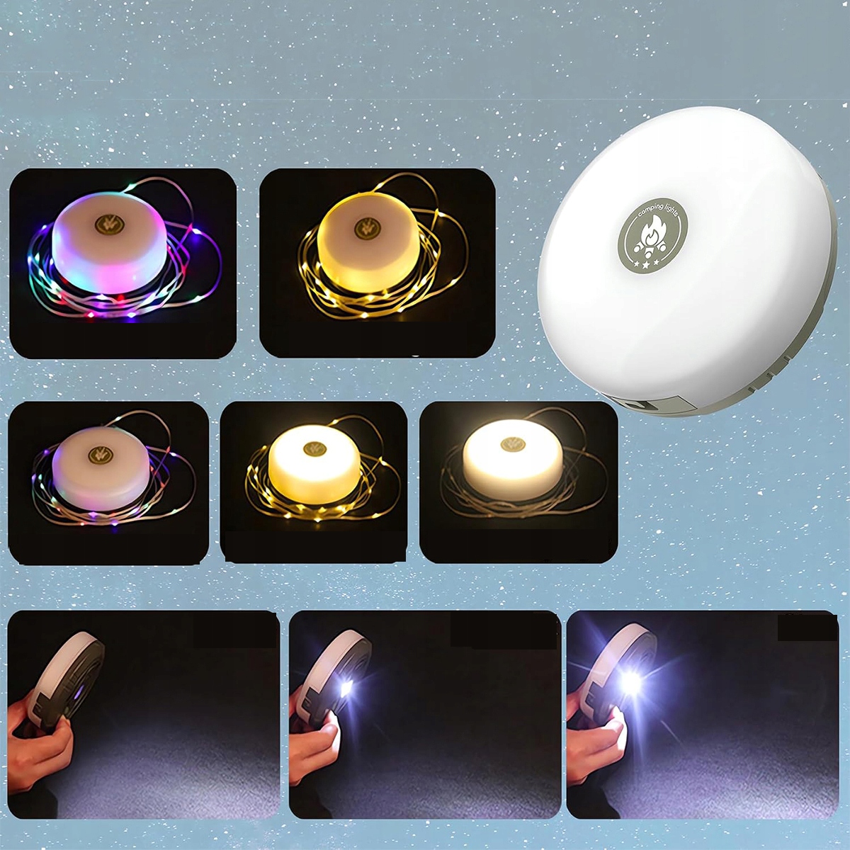 【тепле і затишне світло】 теплий білий + барвистий світло RGB. Світло, що постачається цими світильниками, є теплим і затишним, створюючи ідеальну атмосферу для затишних вечорів у кемпінгу. Довжина мотузки помірна (10 метрів) і може бути гнучко розташована навколо наметів, дерев або іншого кемпінгового обладнання. Світлодіодні лампочки, що підтримують енергію, продовжують термін експлуатації акумулятора і забезпечують тривалий термін використання цілу ніч.