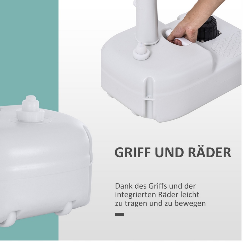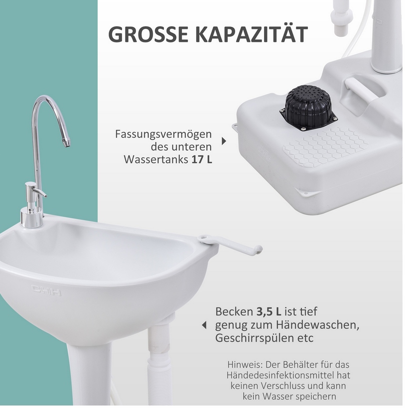 Ви шукаєте портативну раковину? Ми рекомендуємо портативну раковину аутсанни, ідеально. Завдяки вбудованій ручці та колесах ви можете взяти його скрізь із собою. У водному резервуарі цієї мобільної раковини буде 17 літрів. Він оснащений побудованим дозатором мила, рушником та гнучким зливним шлангом для видалення стічних вод. Ідеально підходить для заходів на свіжому повітрі, будівництва, кемпінгу, круїзних човнів та багато іншого.