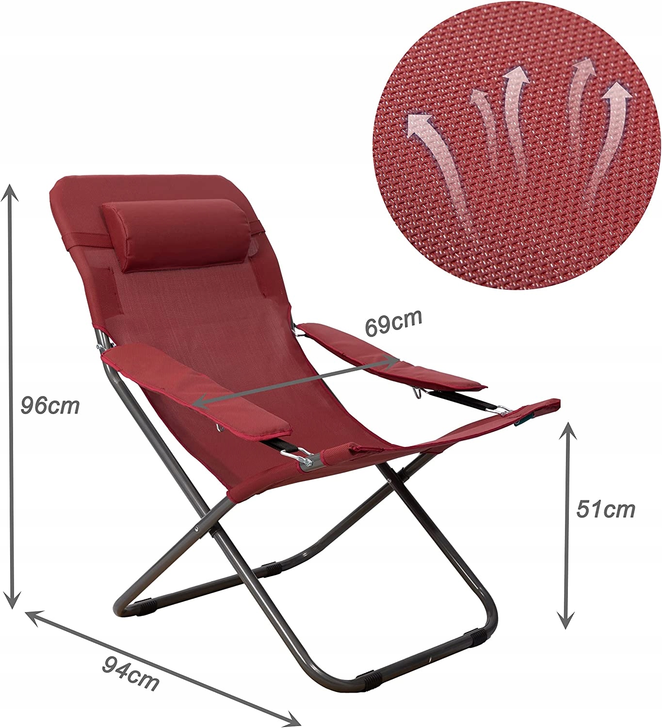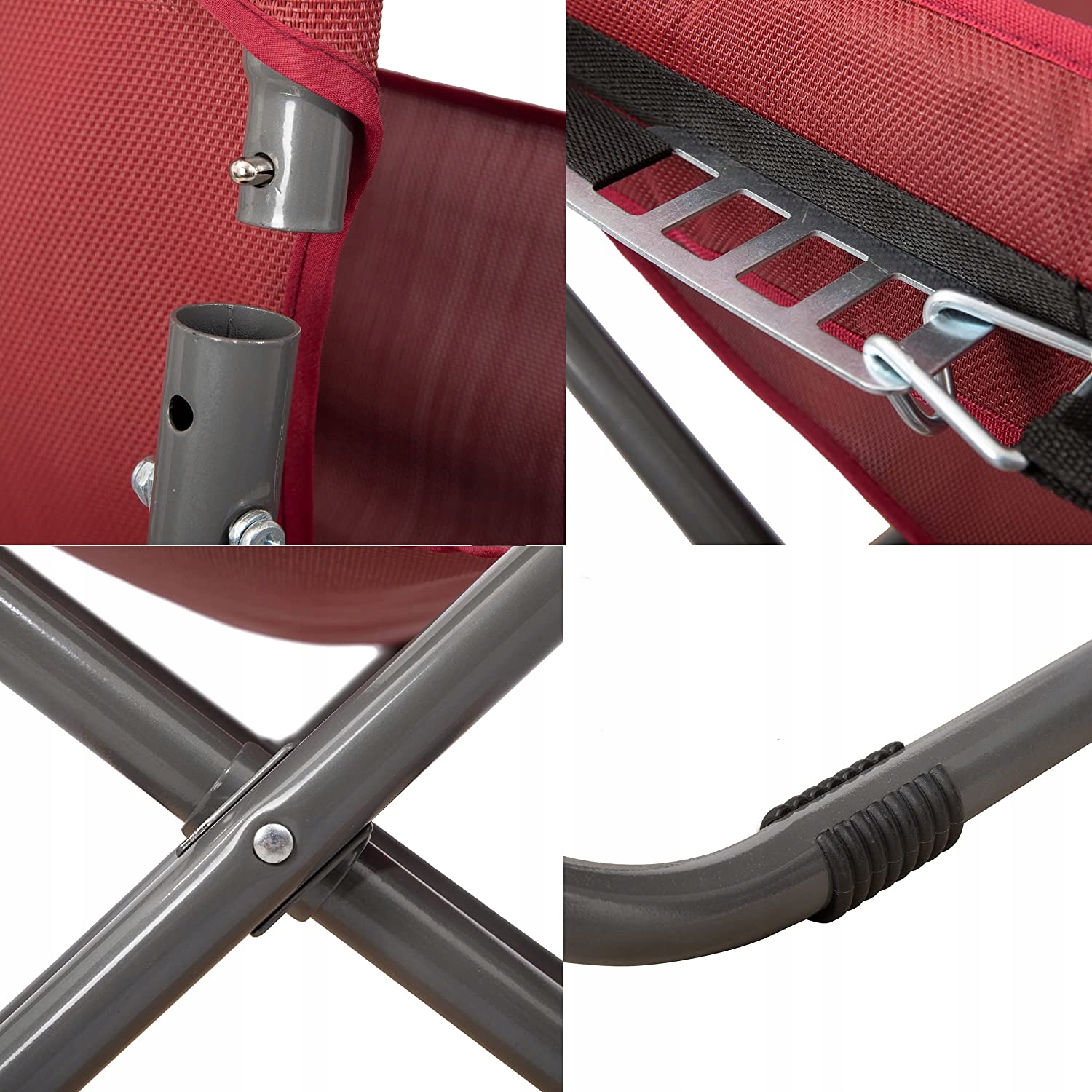 Назва моделі: HOMECALL Складний стілець для кемпінгу з регульованою спинкою з червоного текстилю 2 x 1.