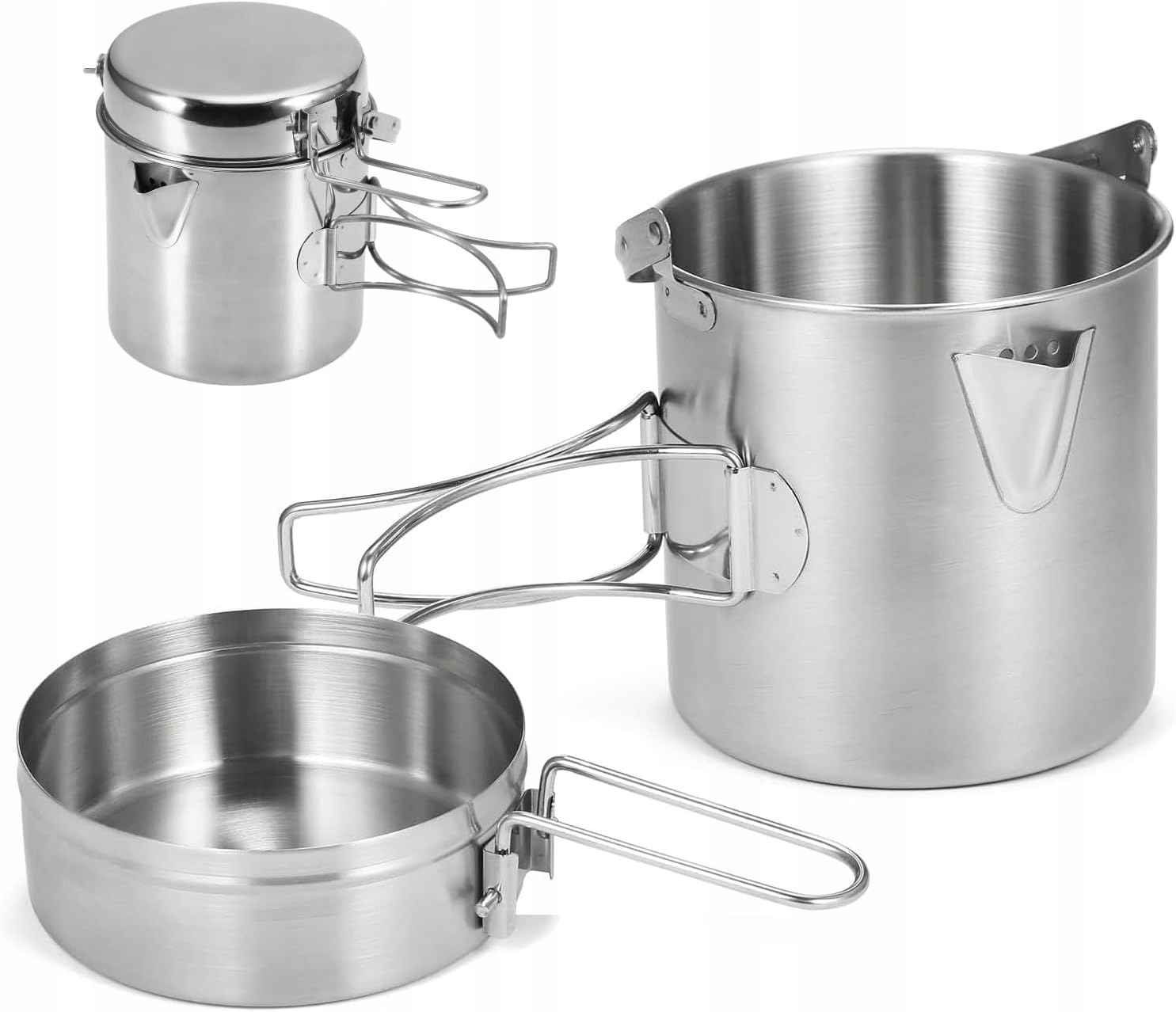 ✅✅Стійкість до корозії -Посуд для кемпінгу виготовлений із нержавіючої сталі та чудово стійкий до корозії. Вам не доведеться турбуватися про неприємні запахи або забруднену їжу під час приготування їжі на відкритому повітрі. Однак ми рекомендуємо регулярно чистити посуд, щоб уникнути корозії на стінках посуду з нержавіючої сталі та продовжити термін його служби.