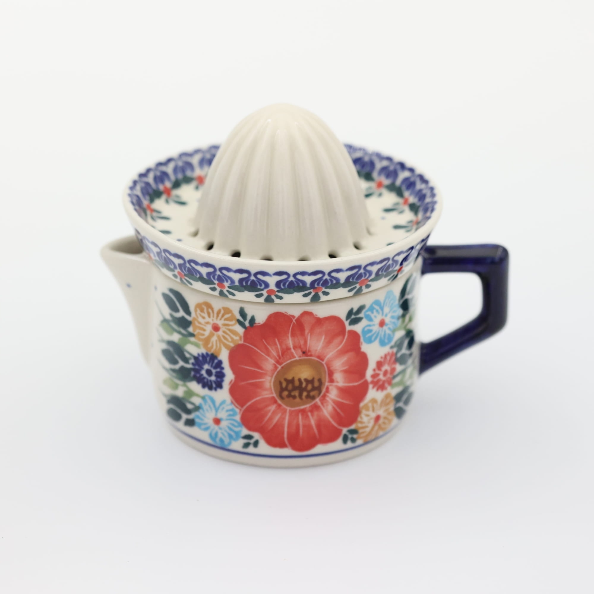 соковижималка, пофарбована в традиційні дизайни кераміки Болеславеки та квіткових прикрас, унікальні знаходження домогосподарств - ідеальне доповнення до кави.