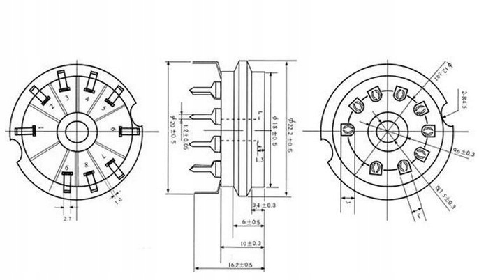 КЕРАМІЧНА ОСНОВА 9-контактний PCB5 NOVAL ECC83 ECC82