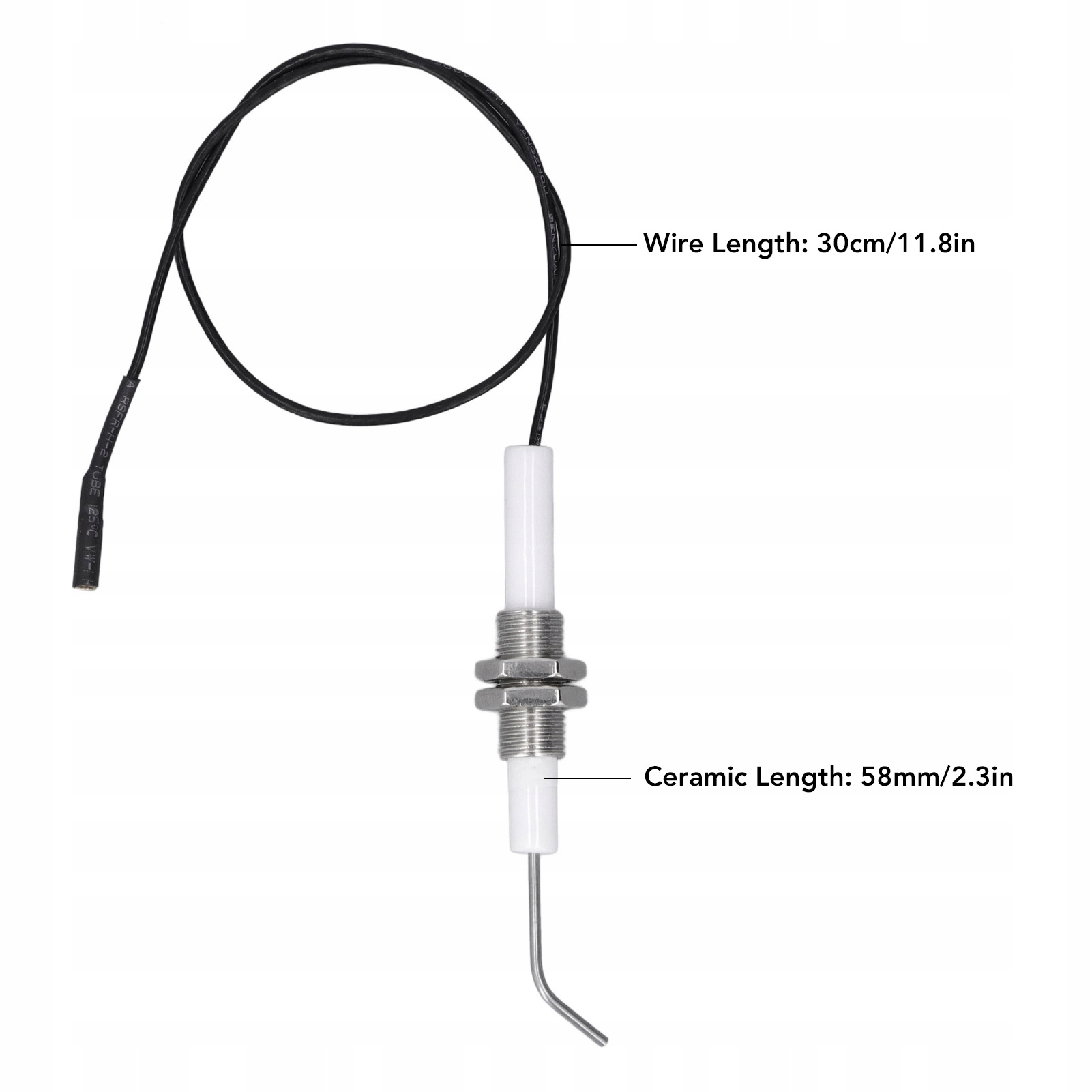 1. Die: Електродник запалювання може бути зігнутий відповідно до фактичних потреб за допомогою плоскогубців, що може забезпечити велику зручність використання. Висока температура Опір: Керамічний електрод запалювання має високу температуру 150 градусів Цельсія, що забезпечує тривалий термін експлуатації. Специфікація: Цей різьбовий електрод запалювання оснащений ниткою M10, а керамічна довжина голки запалювання - 58 мм, а довжина дроту - 1,18 дюйма. Зручне використання: вам потрібно натиснути легше, а потім підключити кабель запалювання до запальнички, щоб виконати його функцію, що зручно використовувати. Можливість використання: Універсальний електрод запалювання має широкий спектр застосувань, які можуть бути використані для іскру газової плитки, гриль, радіатора або інших газових приладів.