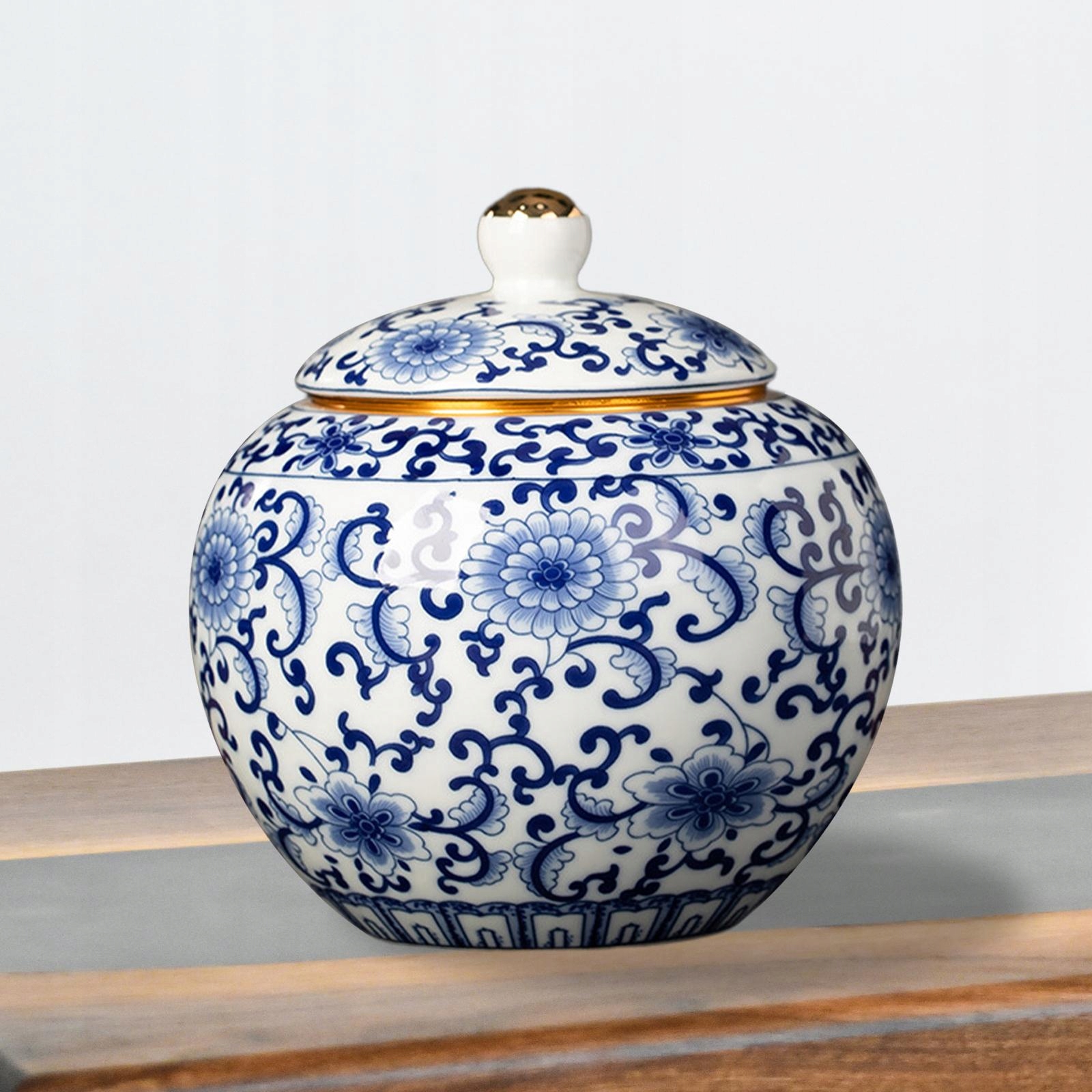 4[високоякісна порцеляна]: Chinoiserie круглі імбирні банки походять з Китаю і вистрілюються при високій температурі. Гладка поверхня та світлий колір. (Просто протріть його вологою тканиною)