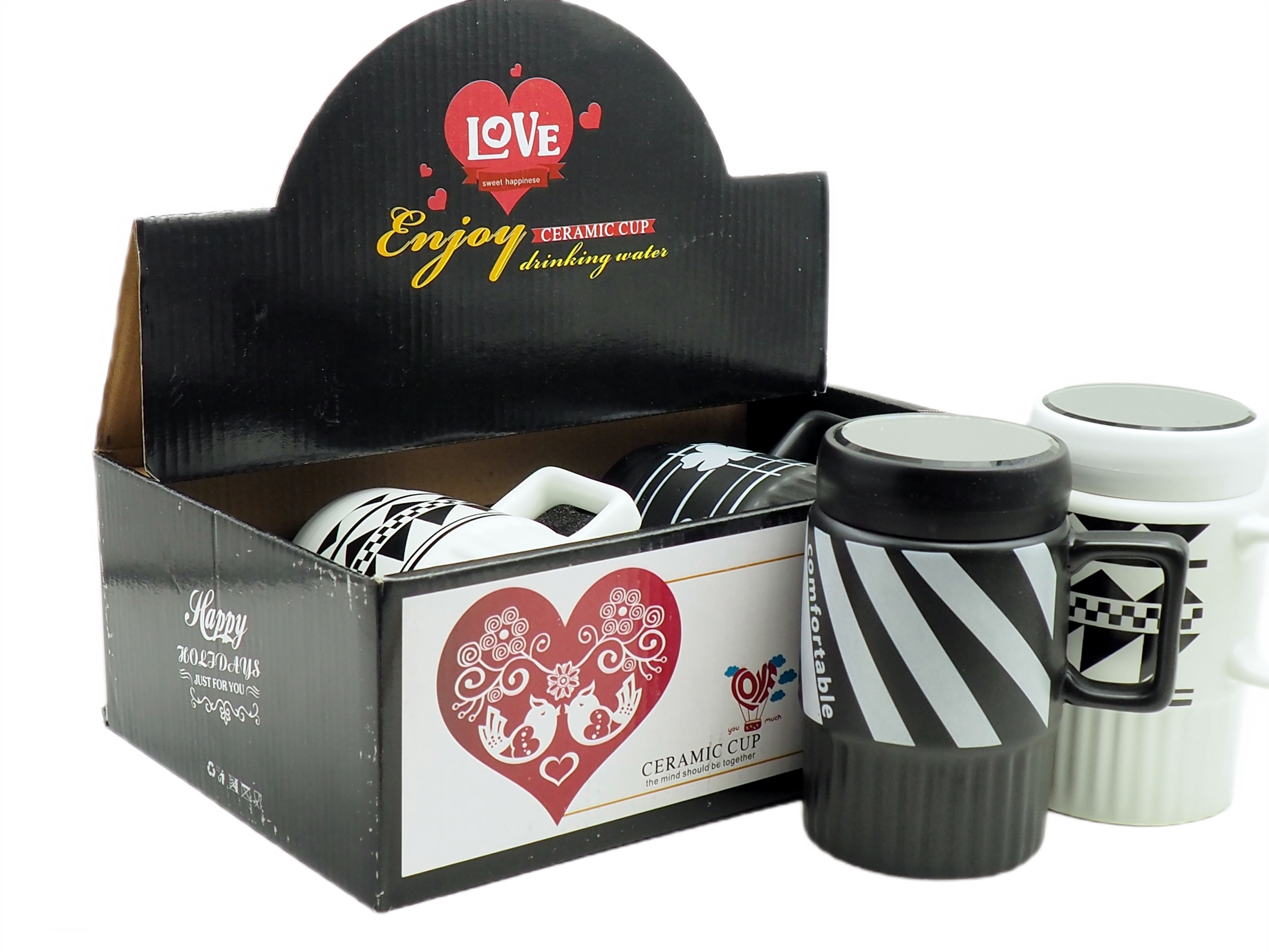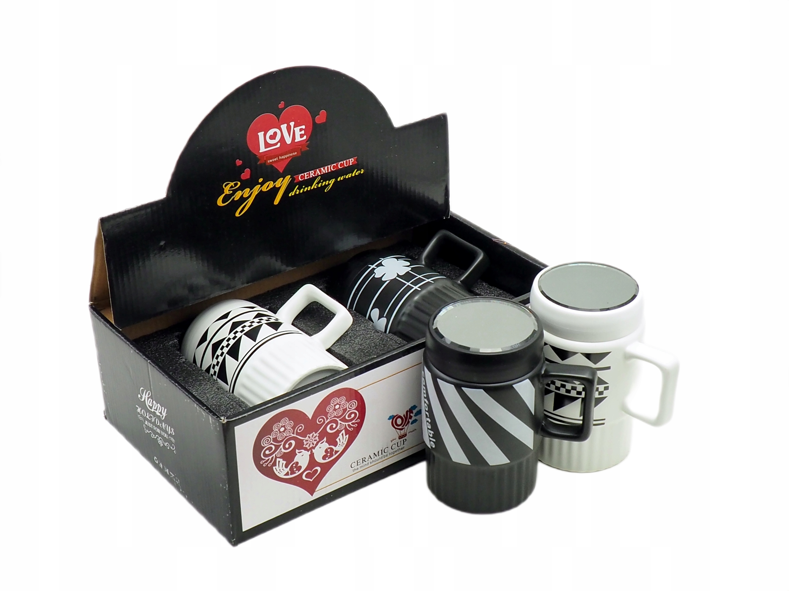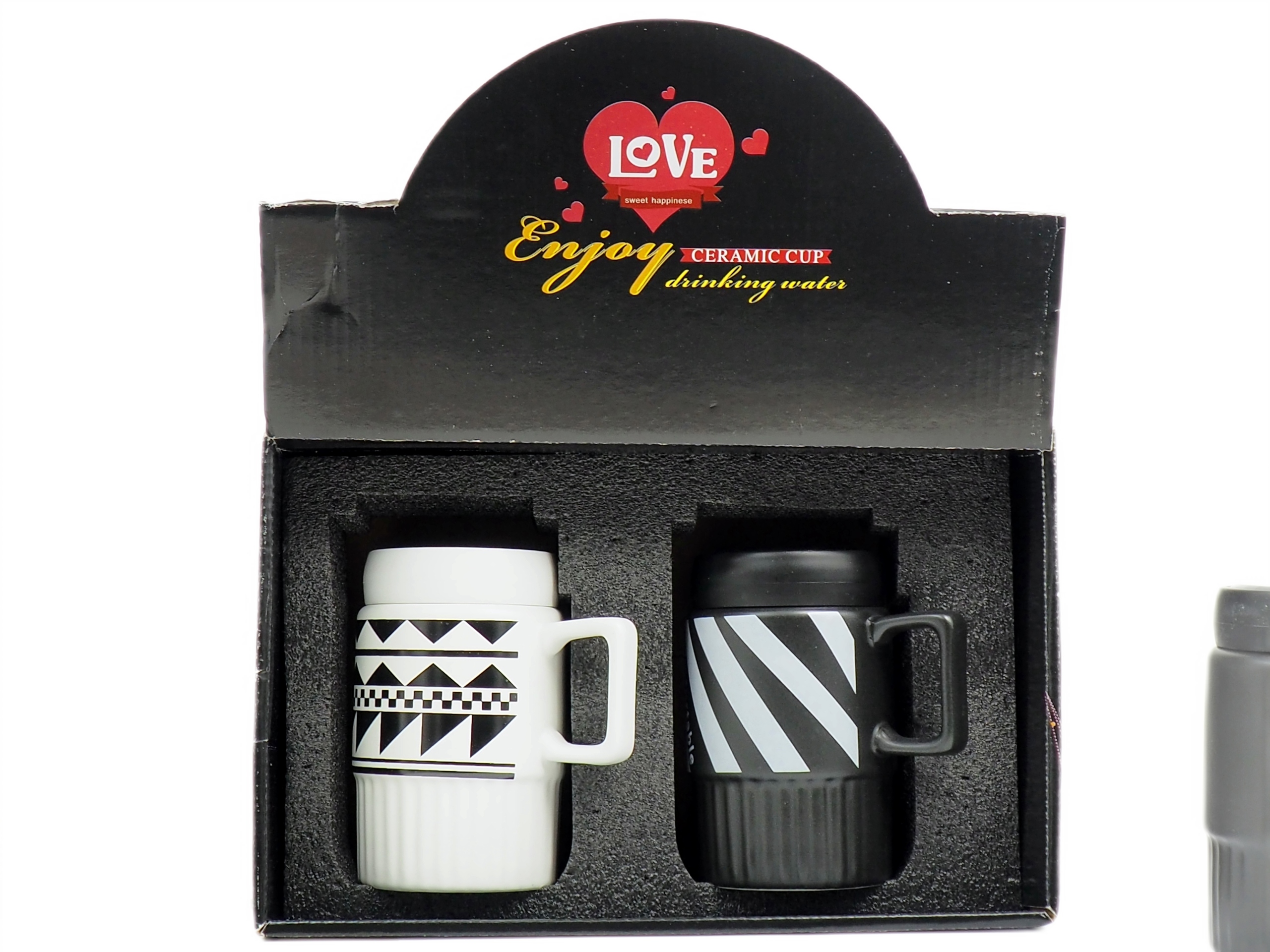 Ідеальний подарунок для подружжя або пари — пара кухлів із високоякісної кераміки з кришкою білого та чорного кольорів.