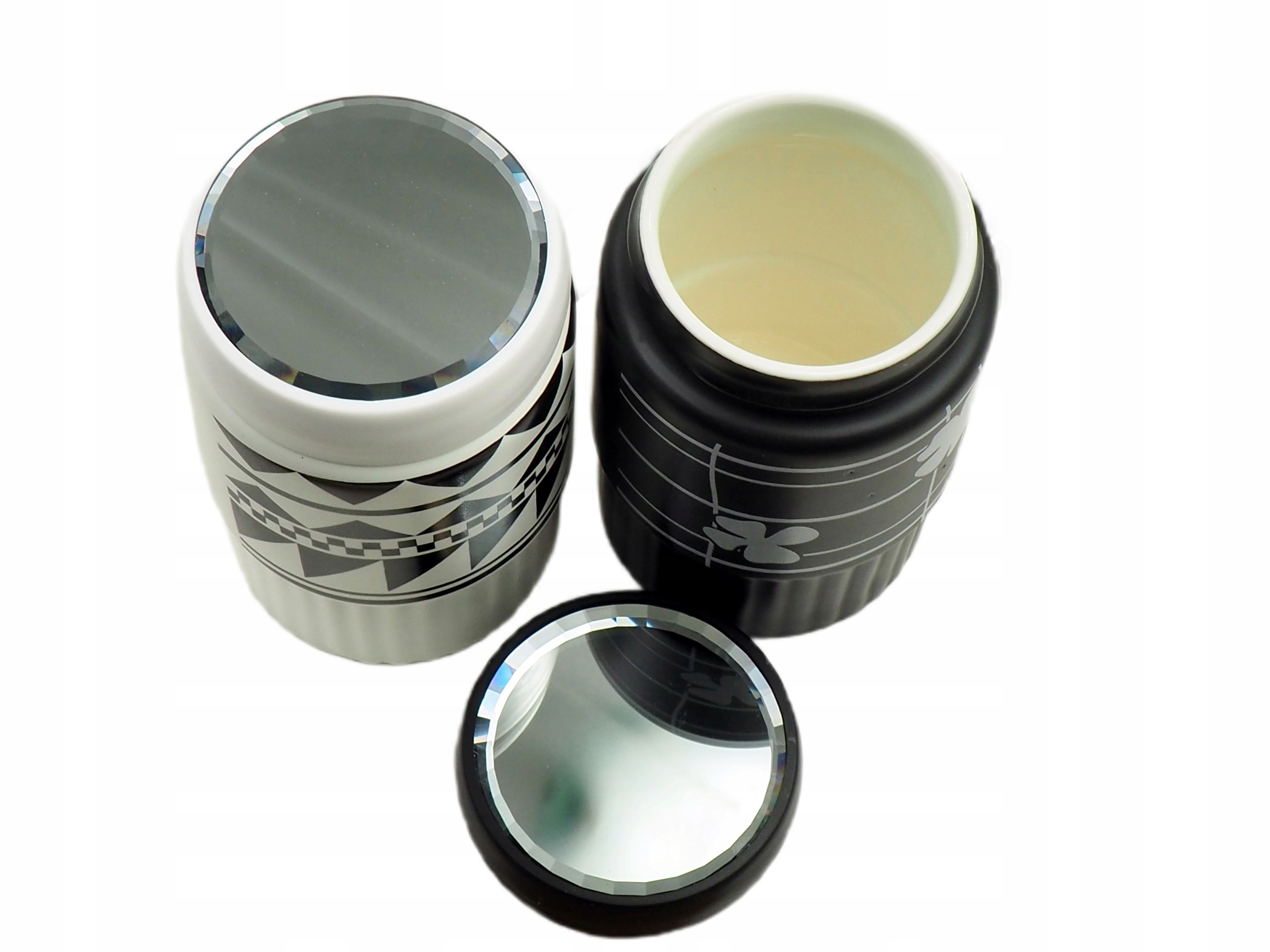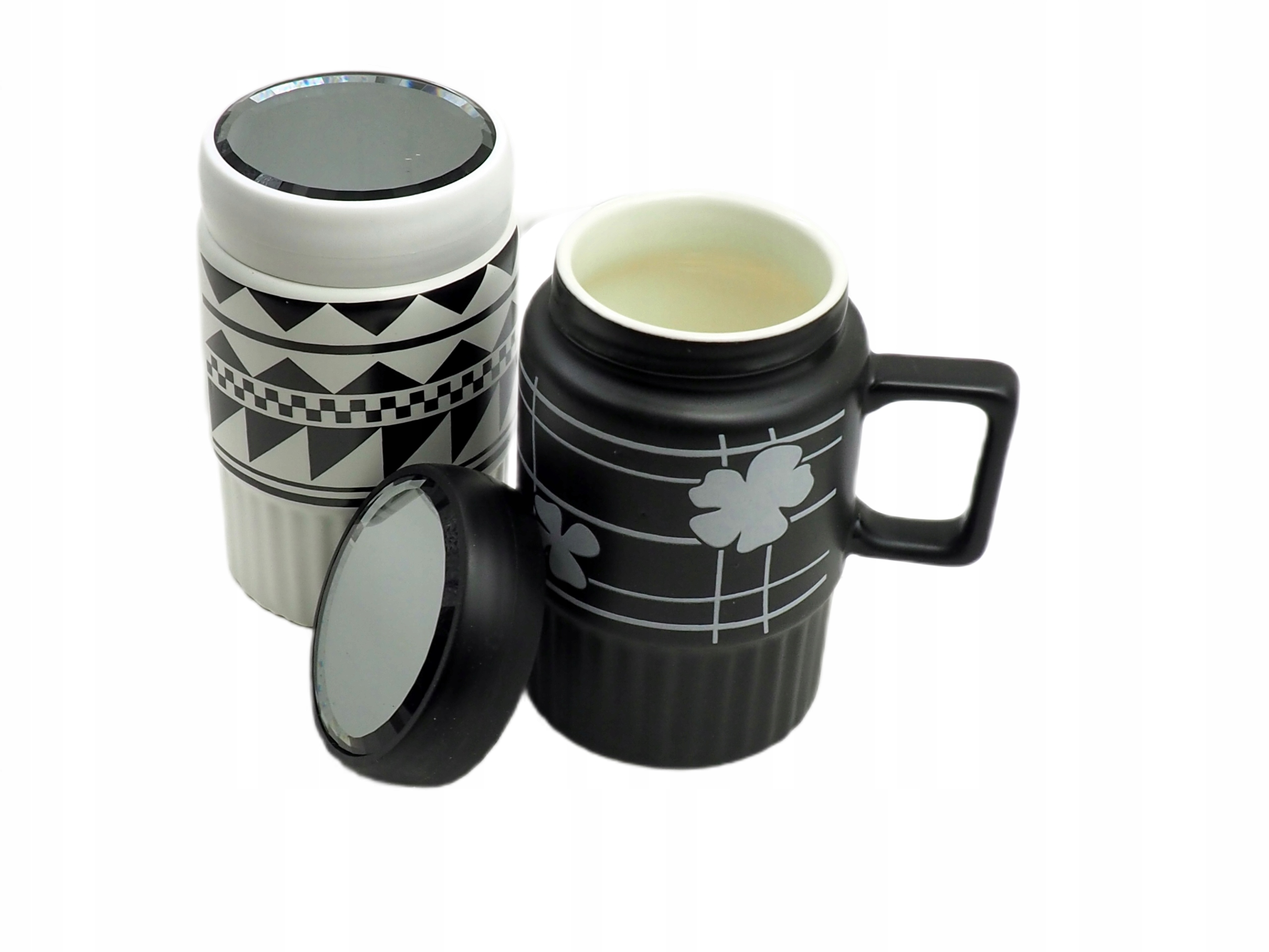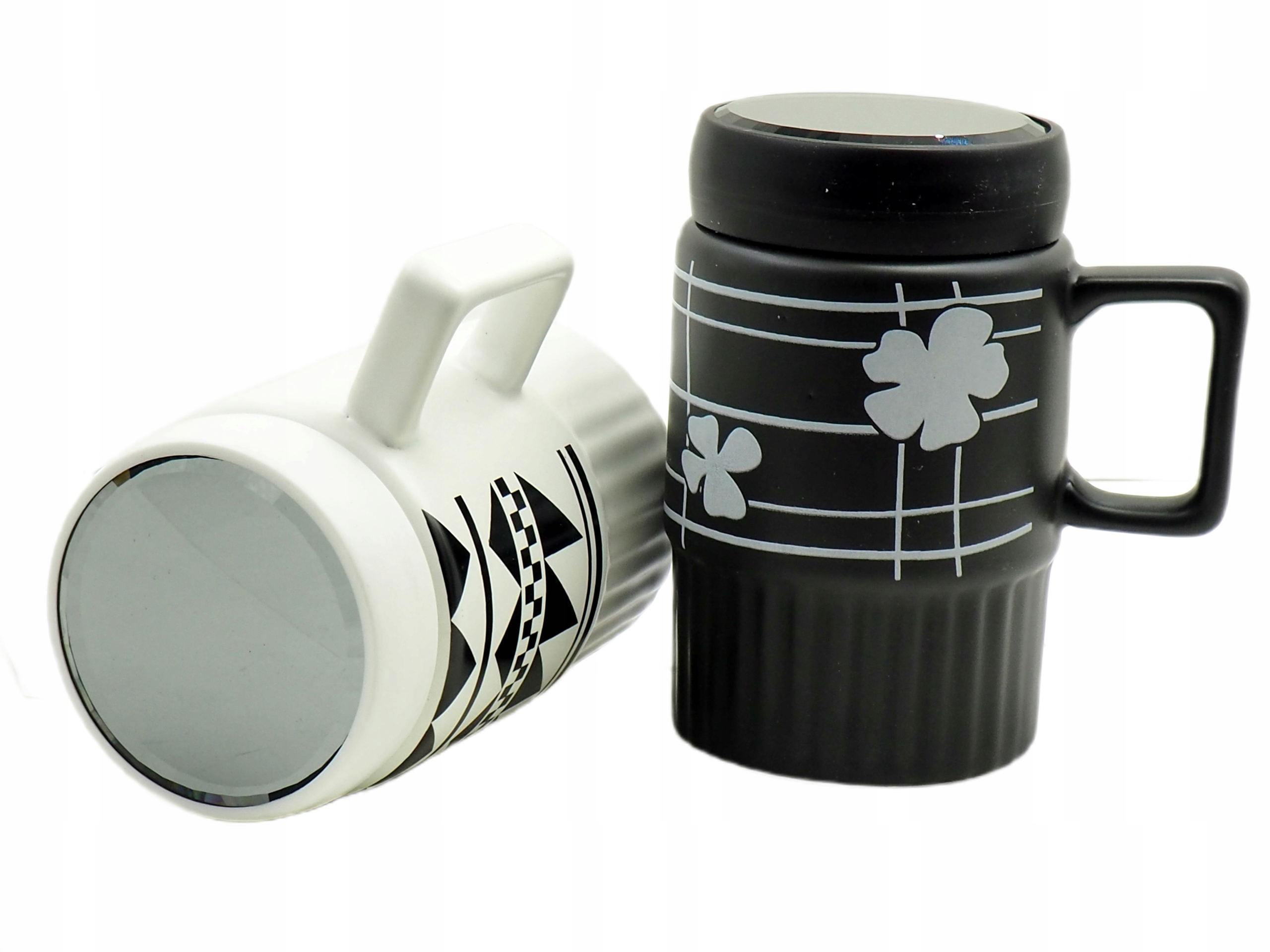 Керамічні нагвинчувані чашки для пар із дзеркальною кришкою, біло-чорні матові
