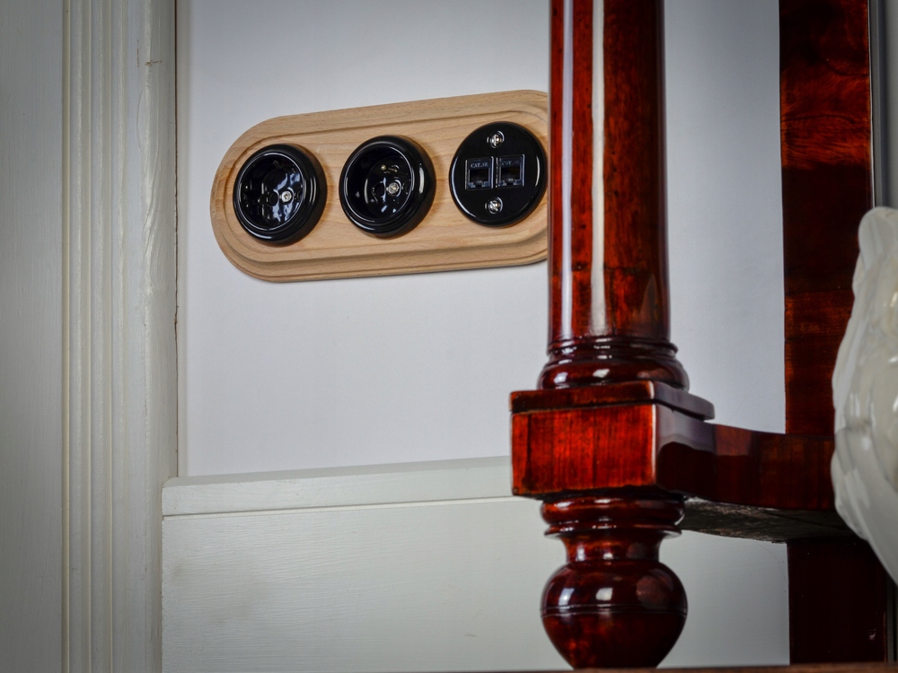Вимикачі та розетки продаються в комплекті з одинарними керамічними рамками або БЕЗ рамок (дерев’яні одинарні рамки доступні на інших наших аукціонах) . Якщо ви бажаєте створити набір з кількох елементів (розеток, вимикачів), то варто придбати розетку чи вимикач без рамки та купити подвійні, потрійні чи четверні рамки. У цій серії ми маємо керамічні та дерев’яні рами для прихованого монтажу обладнання.