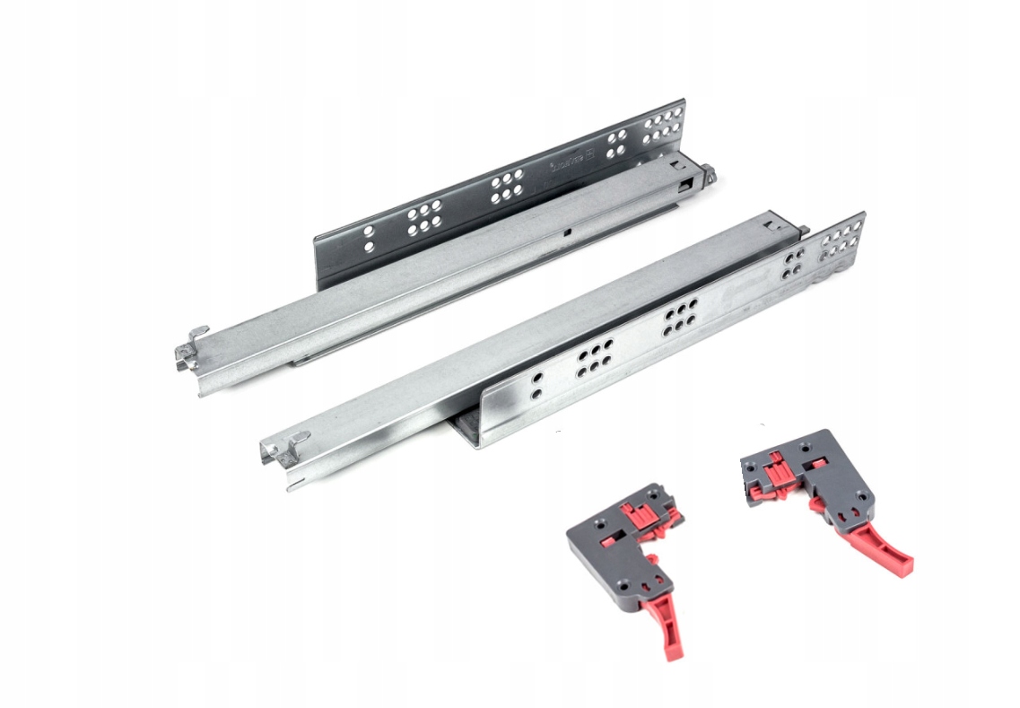 Нижня монтажна напрямна призначена для дощок 16/18/19 мм. Направляюча Sevroll з вбудованим гальмом, що забезпечує тихе і м'яке примикання ящика до корпусу. Повне висування ящика забезпечує зручний доступ до його вмісту. Максимальне навантаження 35 кг. дозволяє використовувати весь простір шафи.
