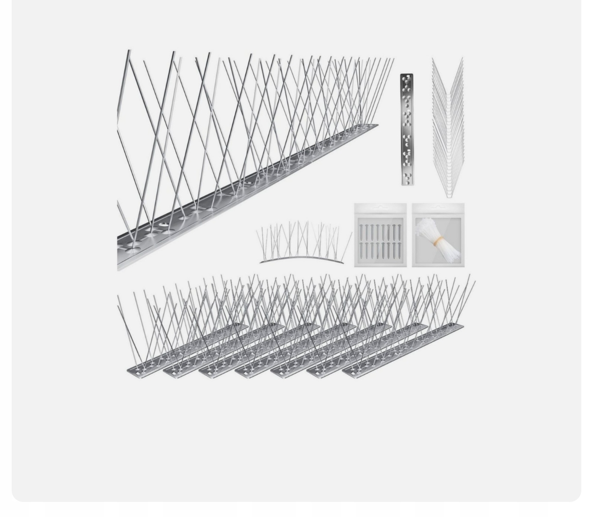 Kesser® Higeon Repeller Bird Repeller - гнучкі шипи з нержавіючої сталі для ефективних захисних балконів, дахів та саду чисті території, безпечне оточення - завдяки прояву голуба Kesser®, ви боїтесь неінватних гостей! The most important features of the product: • made of high quality 304 stainless steel - durable, dimensionally stable and resistant to weather conditions • Effective bird repellent - without electricity, chemicals and risk of injuries • T -shaped system and and - for maximum area covering • Easy installation using or cable bands - ready for immediate use • Flexible base flexible for any surface: wood, concrete, metal, plastic • versatile: window sill, balcony, Edge Doof, садова огорожа та багато іншого • Захист від забруднення та утворення мікробів за допомогою пташиних послідів • Ідеально підходить для домогосподарств, компаній, гастрономії та адміністрації • Нешкідливий, доброзичливий та цілеспрямований технічні деталі: нержавіюча 304, основа, виготовлена з гнучкого пластику • Температурна опір: теплові та холодні стійкості до погодних умов: так • форма: t -shaped and • modulesmensizings: 2.8 x 25 x 11.8 cm x1 x Обкладинка набору 3 м: 12 модулів à 25 см. 8,5 см • Параметри складання:, кабельні смуги доставки: 2-метрова версія: • 8-кратні ряди Higeon Cerrent • 16x • 16-кратні кабельні смуги.
