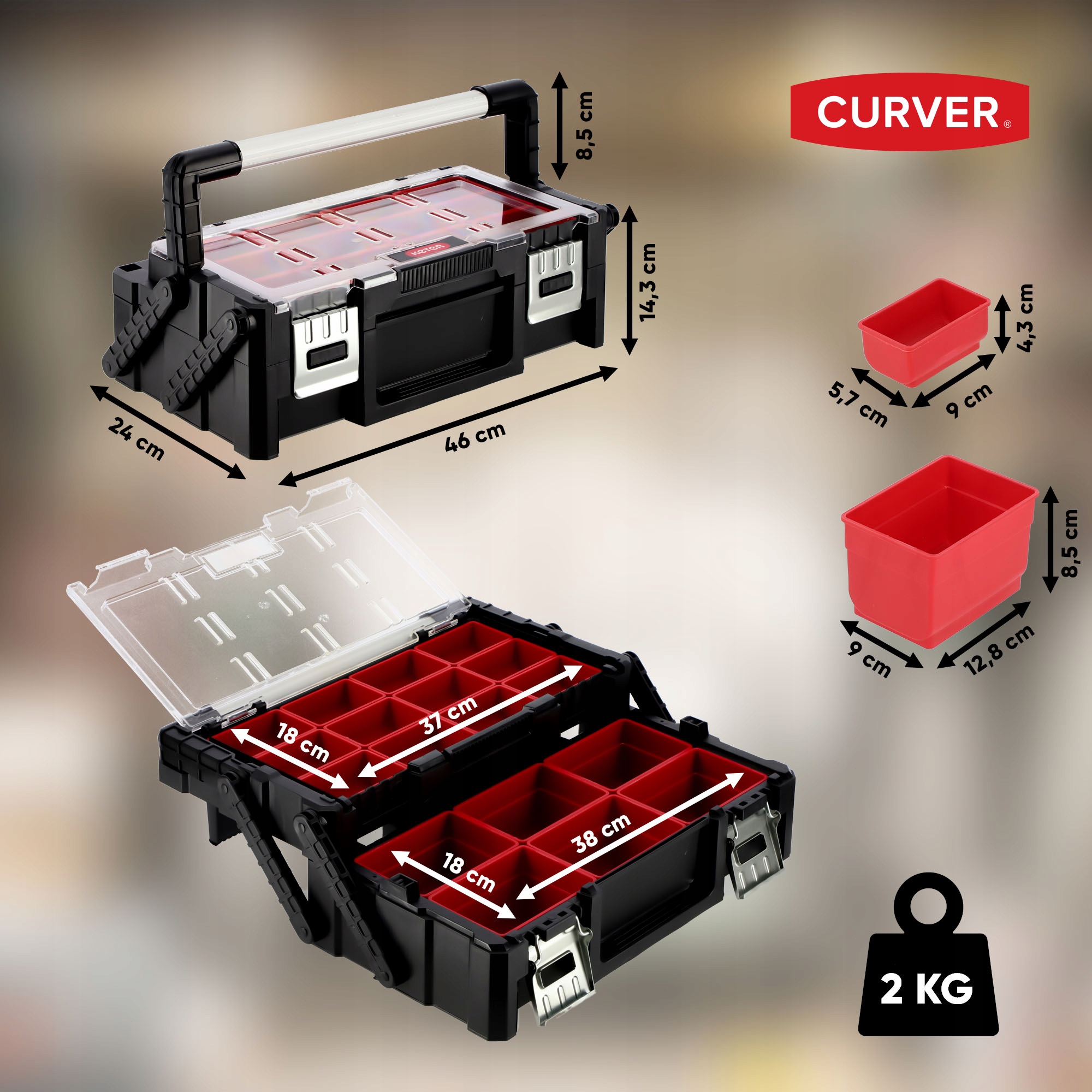 Функціональний кейс для інструментів є обов’язковим для кожного професіонала. Наш органайзер оснащений численними відділеннями, де ви можете зберігати гвинти, молотки чи дрібні інструменти.