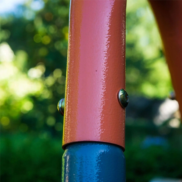 Гойдалки виготовлені зі сталевих профілів з порошковим фарбуванням, завдяки чому гойдалки можна використовувати багато років, а спеціальне покриття запобігає швидкому старінню. Все це робить гойдалку особливо міцною і довговічною.