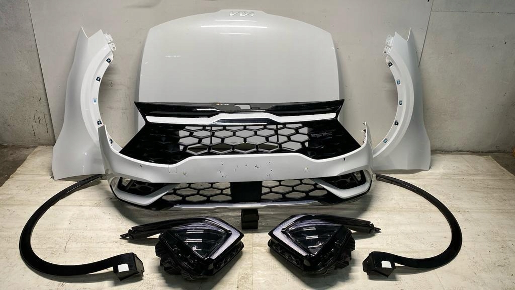 Продам комплект, який видно на фото до автомобіля KIA SPORTAGE V GT-LINE 2021-2023 р.в. В комплект входить: капот, два крила з молдингами, два повних світлодіодних ліхтаря і версія бампера для PDC і радара. Під час транспортування елементи можуть мати подряпини. Код фарби HW. У мене є більше деталей для цієї моделі на інших аукціонах