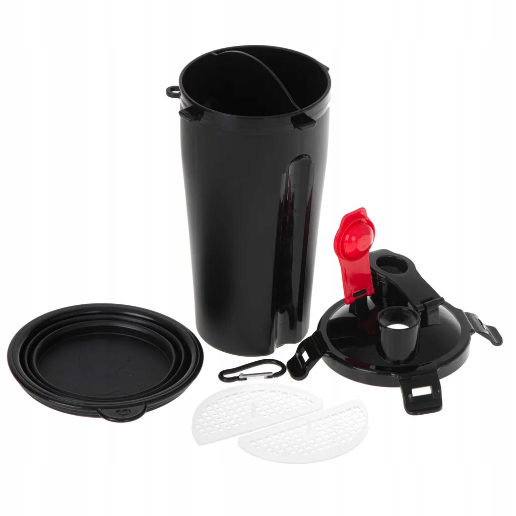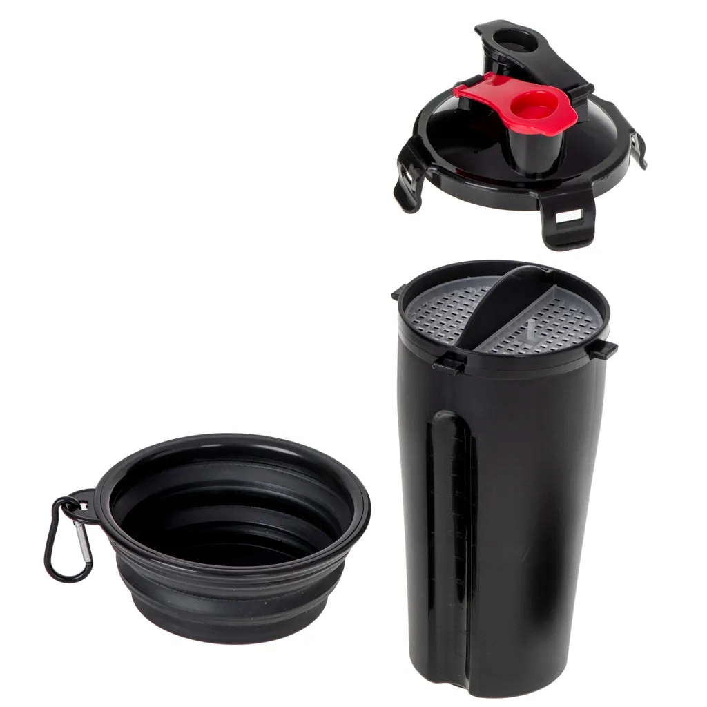Ви любите бути зі своїм чотириногим на ходу чи робити довгі прогулянки? Тоді ця ємність для їжі та води підходить для вас! У контейнера є 2 окремі води та 350 мл сухої їжі. Набір також включає складну силіконову миску з металевим карабіном для кріплення на складі.