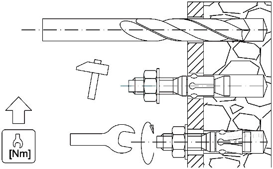 - Затягніть гайку (при затягуванні гвинти притискають на розширювальний затискач, що викликає його тиск на стінки свердловини)