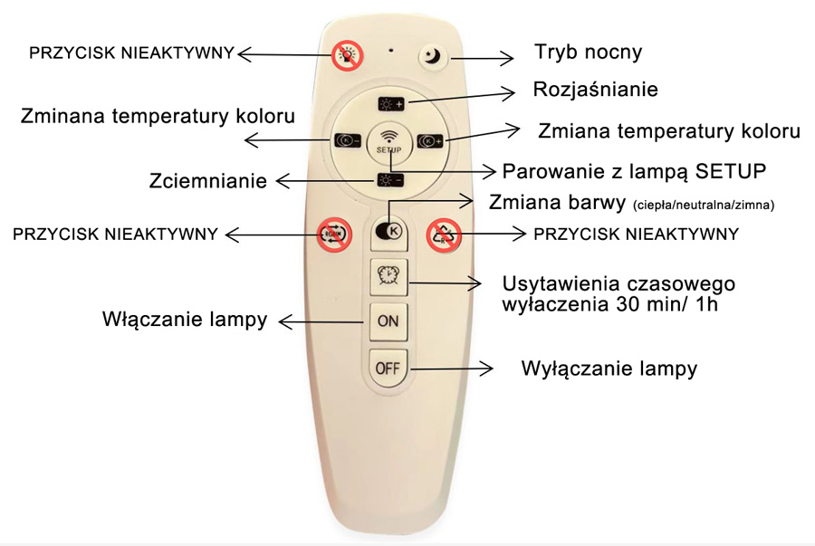 - Щоб об'єднати пульт дистанційного керування з лампою, потрібно увімкнути лампу та натиснути кнопку SETUP на пульті дистанційного керування < /ul> двічі