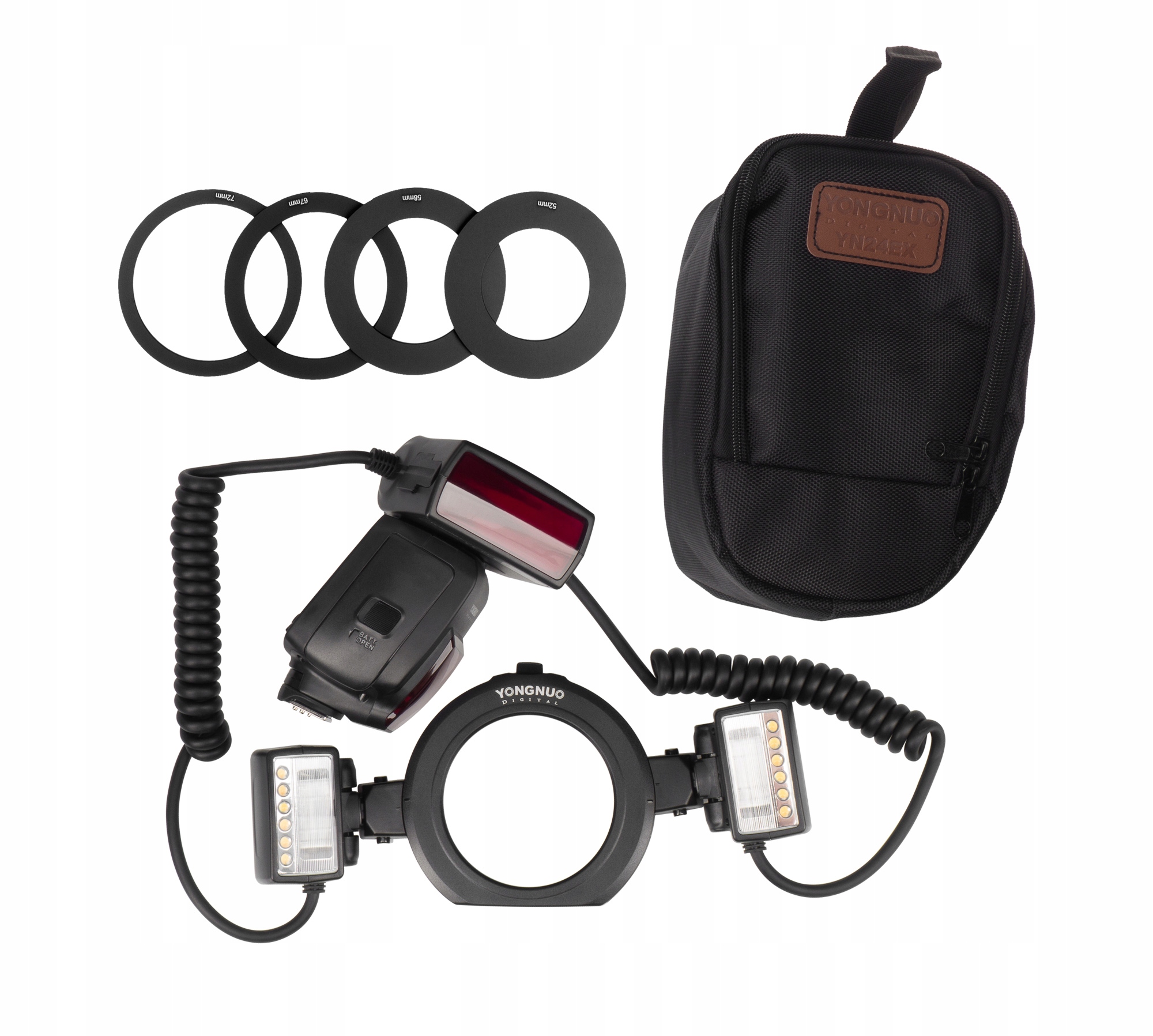 YN24EX пропонує величезні можливості конфігурації, тому освітлення можна ідеально адаптувати до будь-якої ситуації. Мобільні лампові головки підключаються до блоку управління за допомогою гнучких кабелів довжиною 40-90 см. Завдяки цьому рішенню можна встановити головки, наприклад, на двох незалежних штативах з кріпленням 1/4 дюйма. Головки також можна встановити на блок керування та кільце, прикріплене до передньої частини об’єктива, і направляючи світло в потрібному напрямку полегшується завдяки рухомим з’єднанням.