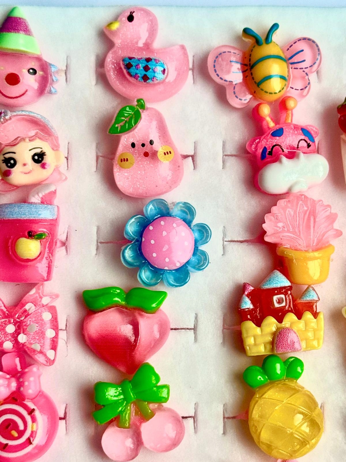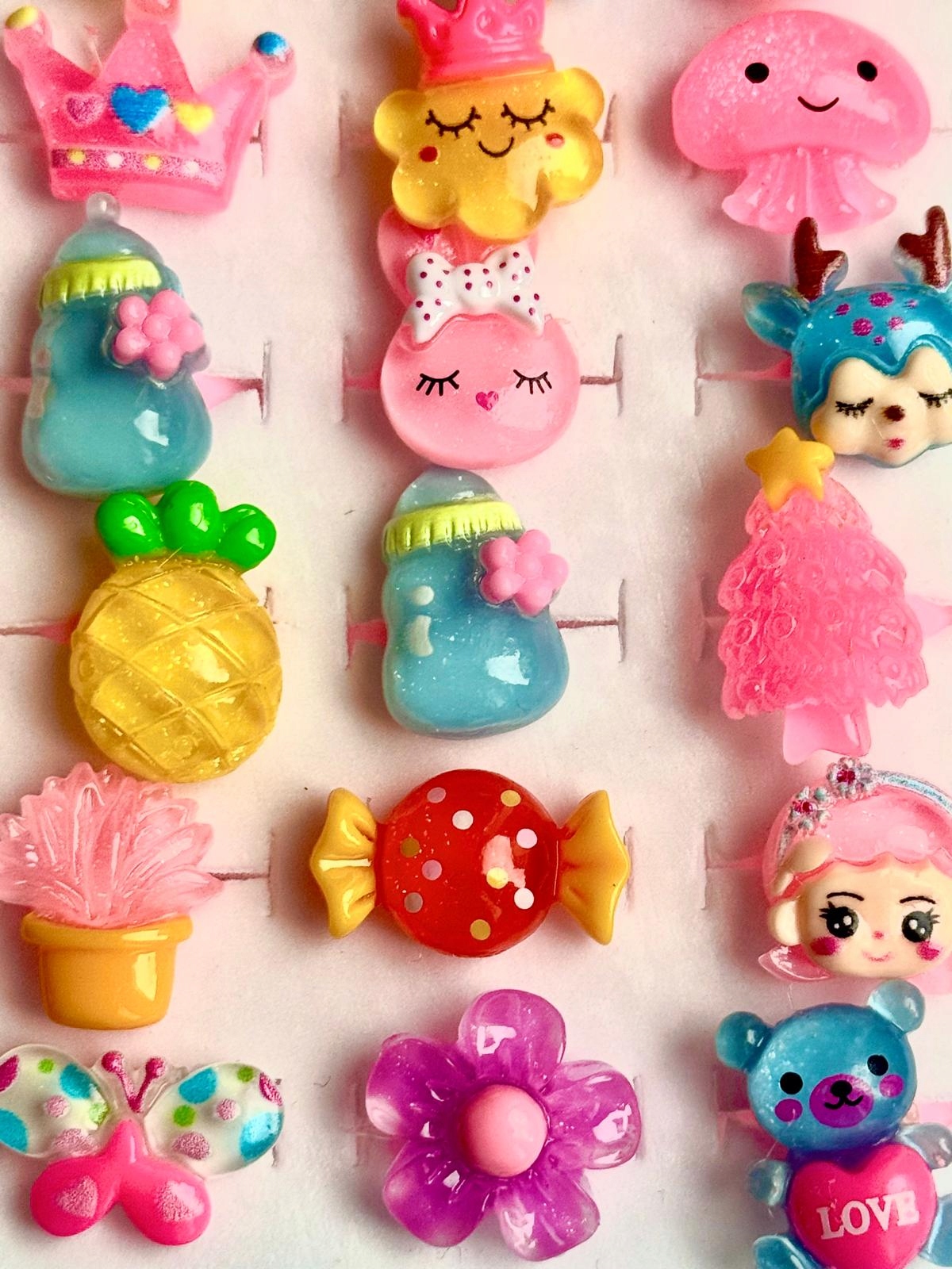 бування різноманітності конструкцій - набір включає кільця з різними мотивами: від квітів і сердець до барвистих кристалів, що дозволяє відповідати кожному випадку та стилю. > 4 що є легким і делікатним для шкіри дитини, забезпечуючи безпеку під час розваг. Маленька принцеса.