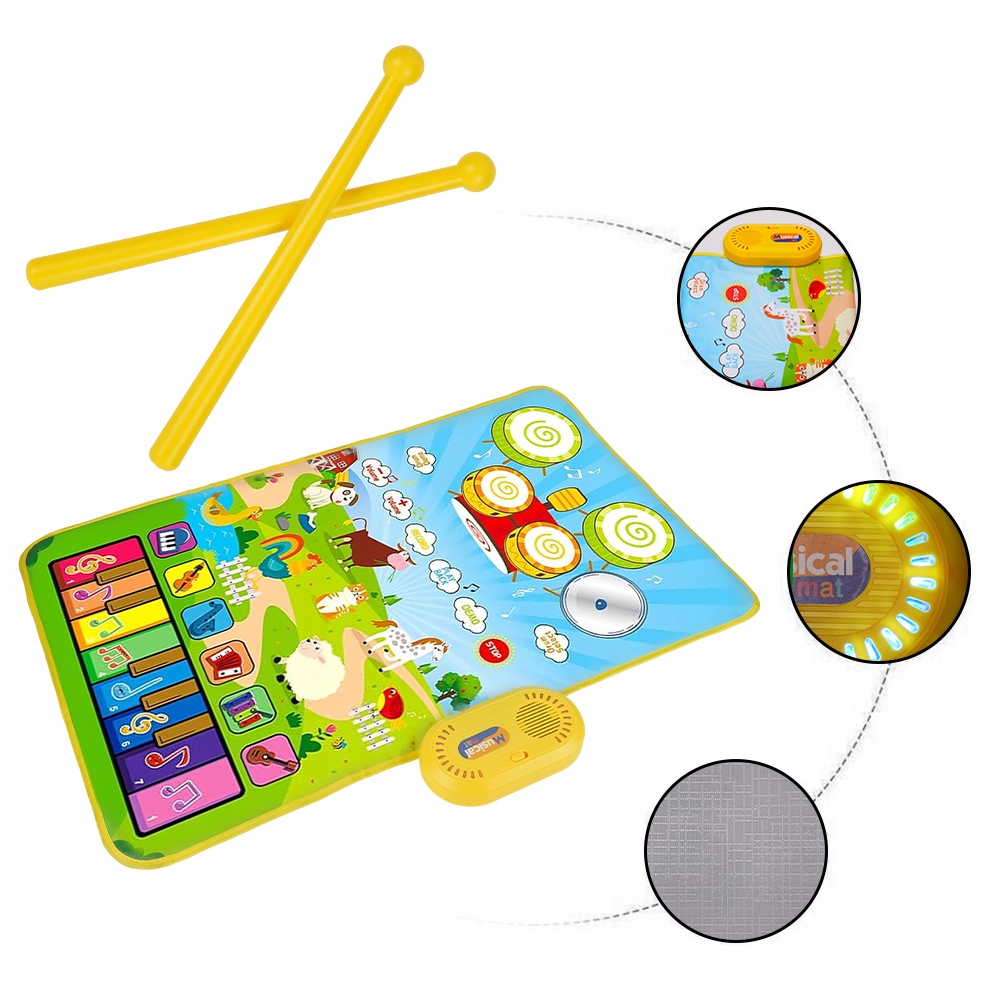 👍👍👍【дитячий музичний килимок 3 в 1】 багатофункціональний дитячий музичний килимок включає в себе барабани для дітей, клавіатура піаніно та 8 звуків тварин, 6 музичних інструментів, 4 звуки барабанів та 1 звук тарілок, музичний килимок для дітей віком 1-3 роки.