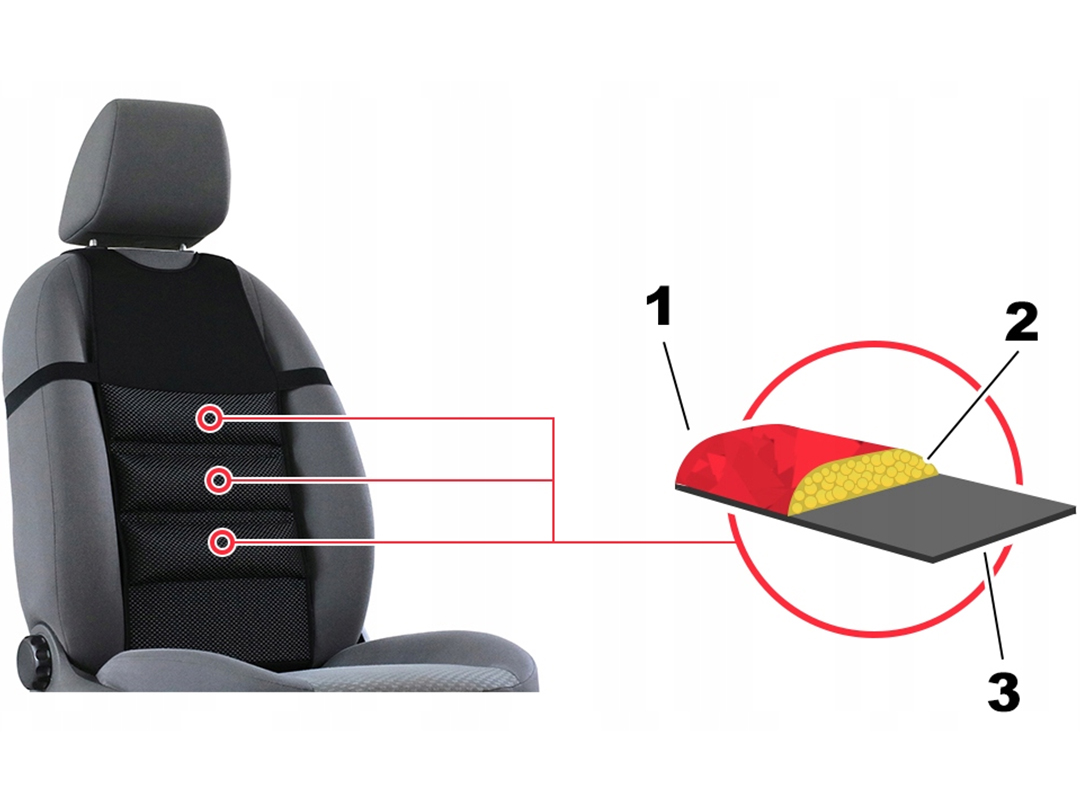 - Стабілізуюча підкладка - запобігає зсуву чохлів на сидіннях, додатково захищає та захищає від механічних пошкоджень. li>