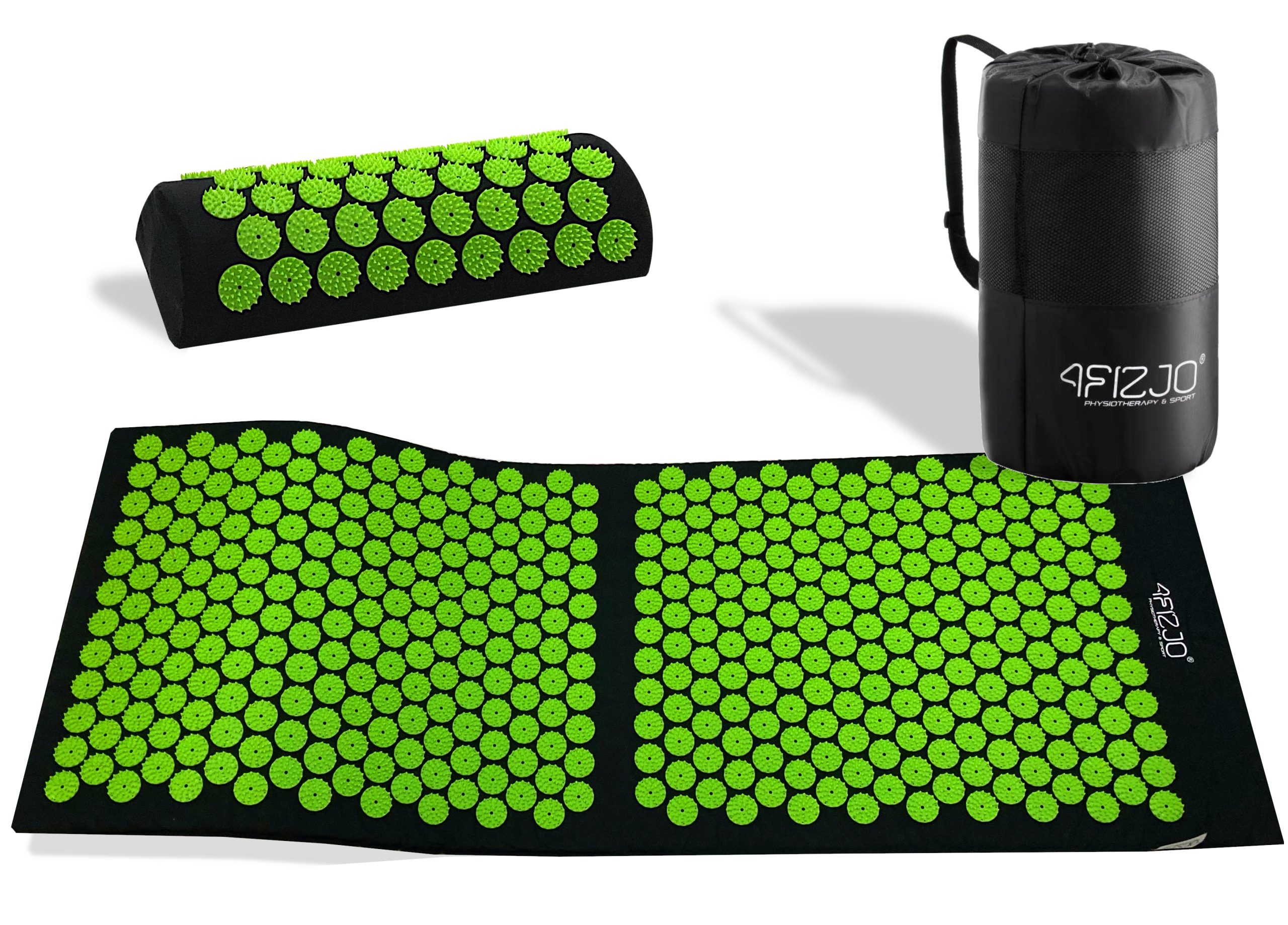 4Fizjo Реабілітаційний килимок для точкового масажу з подушкою чорно-зелений 130x50см