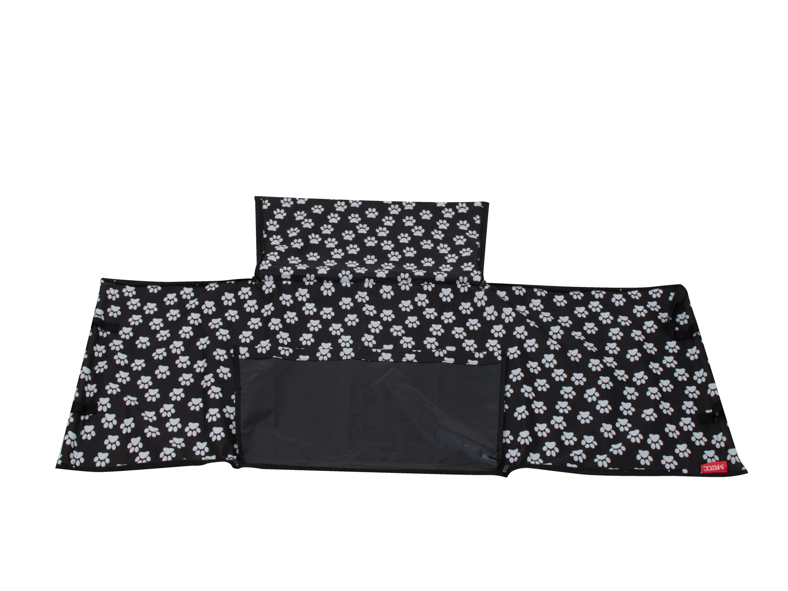 Автомобільний килимок із чарівним візерунком білих відбитків лапок на чорному тлі ідеально підходить для подорожей з вашим вихованцем.