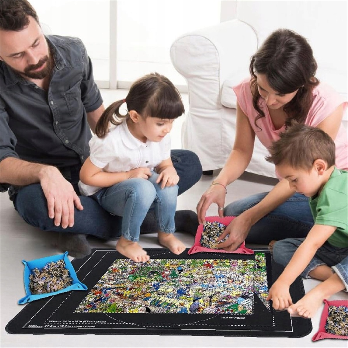 килимок досить легкий, щоб ви можете нести ваші незавершені головоломки куди завгодно! Закінчивши розгадувати на сьогоднішній день, сховайте килимок під ліжко, стіл або диван — він не займає багато місця та захищає вашу роботу від пошкоджень.