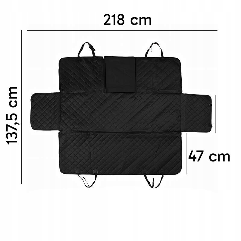 Мат підходить до більшості автомобілів, а спеціальні вкладки дозволяють безпечно прикріпити собаку.