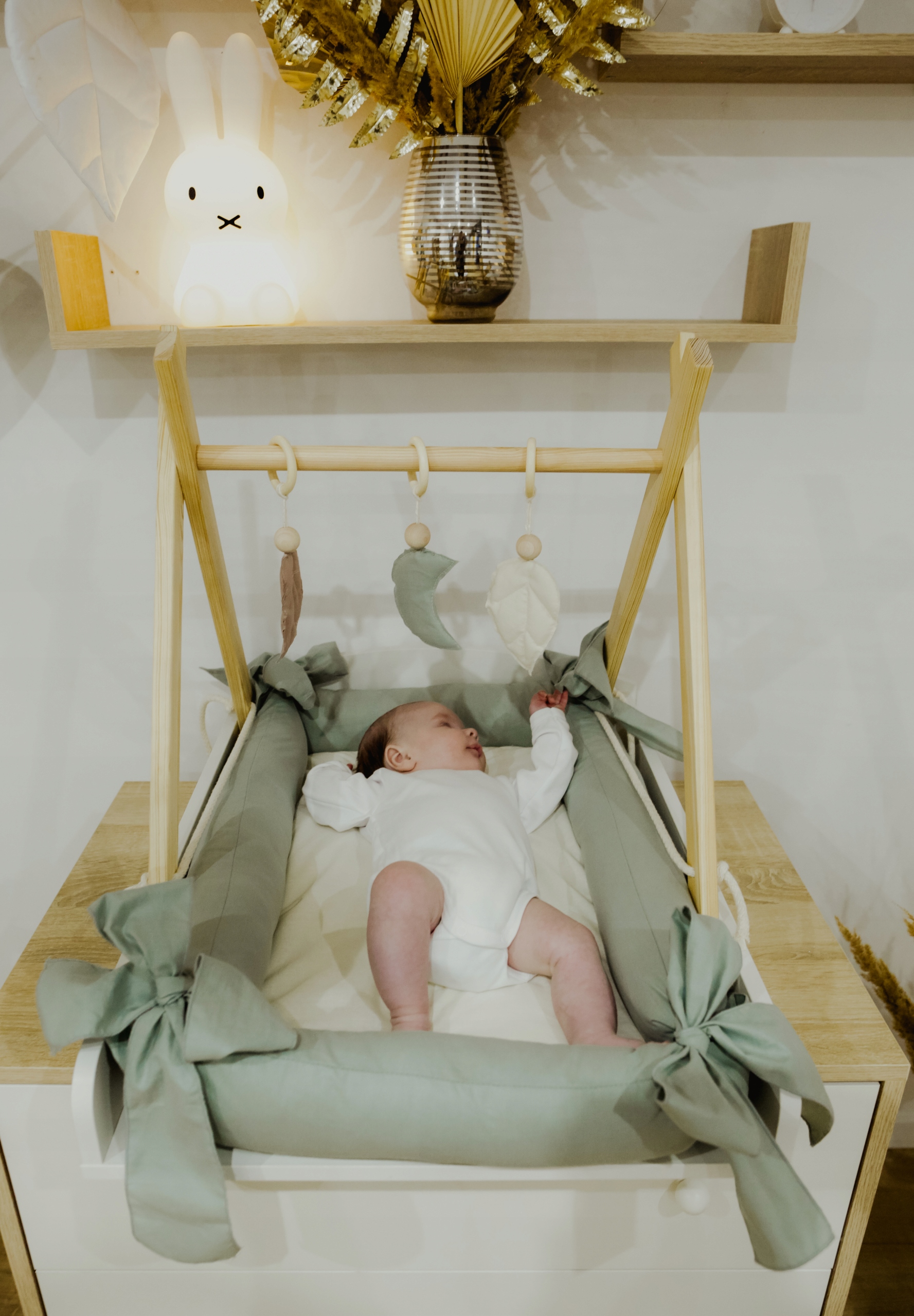 Кокон також можна розмістити на ліжку або на землі - як безпечний килимок для гри дитини - ми рекомендуємо освітнє розширення нашого бренду для кокона та дерев'яний пеленальний столик для комода. p>