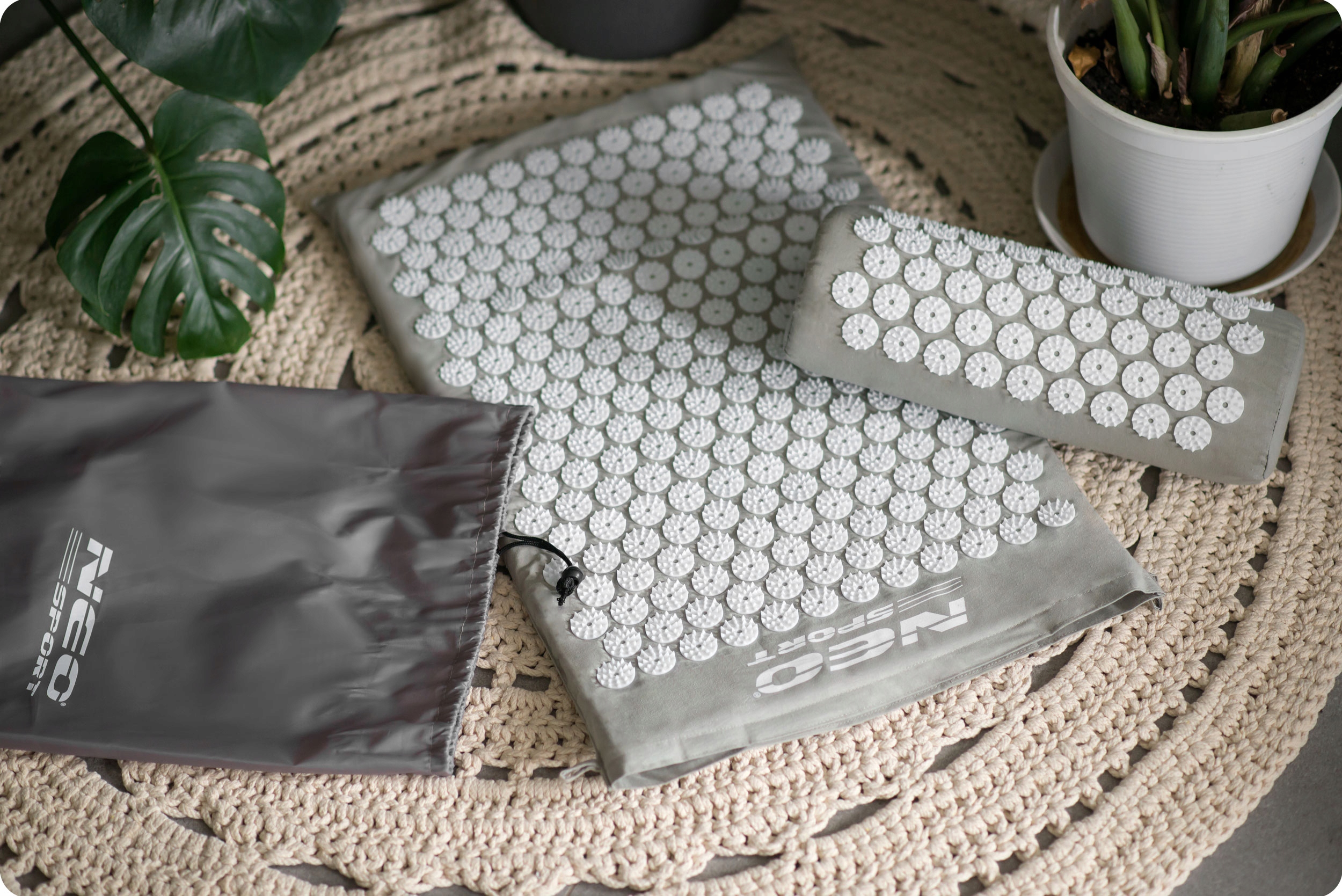 Килимок для точкового масажу з шипами NEO-SPORT NS-900 СІРО-БІЛИЙ