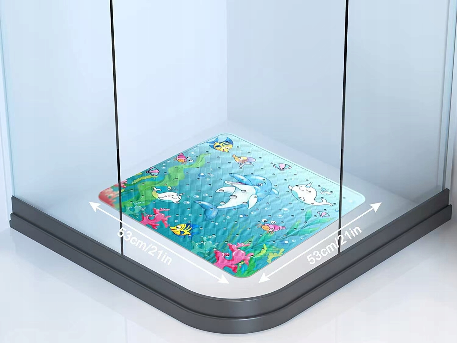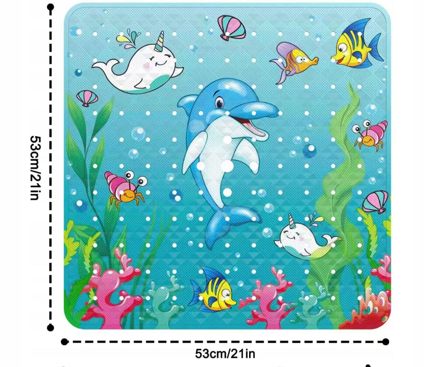 У нашому килимку для ванної є розміри 53 х 53 см і достатньо для всієї ванної кімнати. Якщо у вас є кілька дітей, маленького килима для ванни недостатньо. Цей килимок для ванни дозволяє багатьом дітям купатися разом, економлячи більше часу. Більше дітей, веселіше.