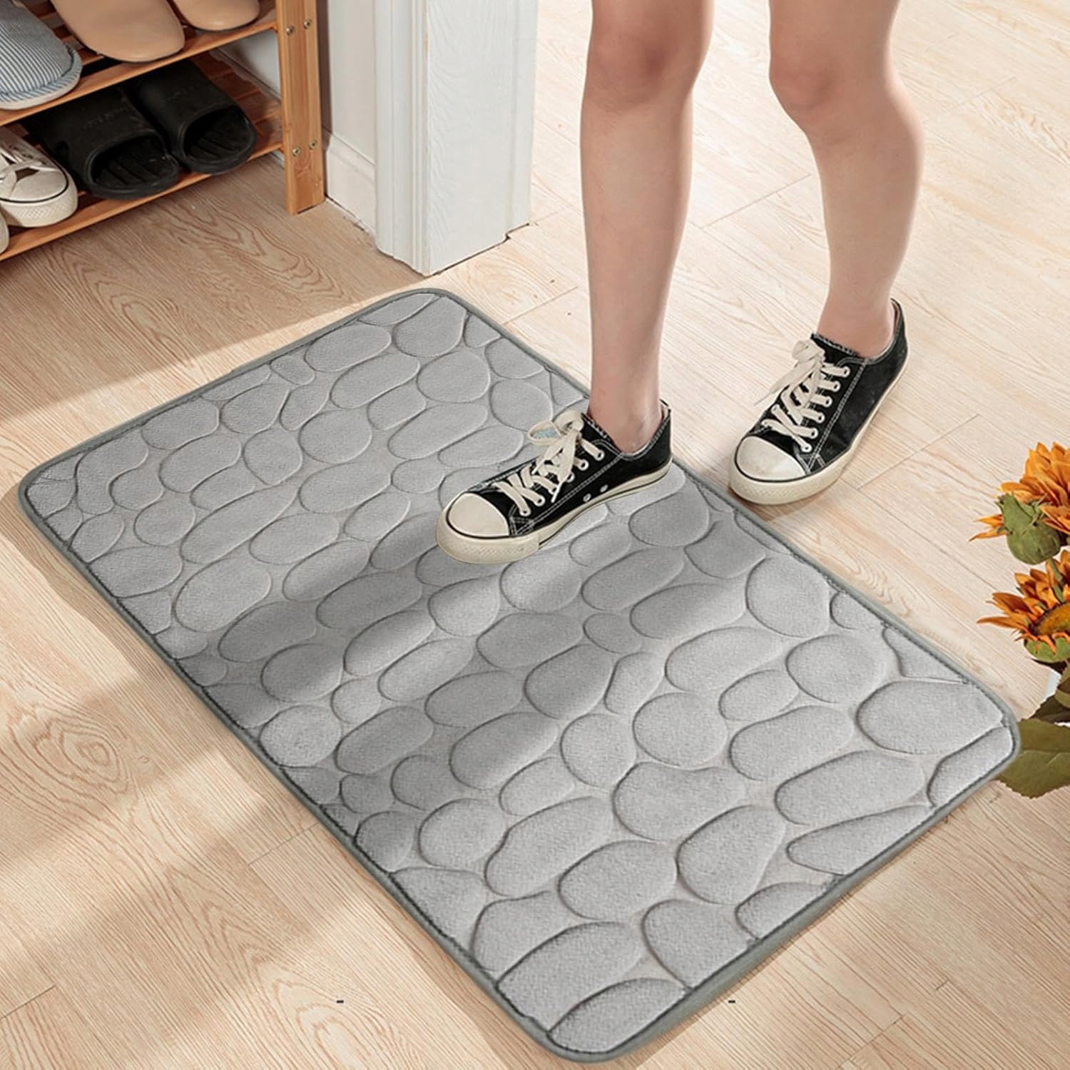 Килимок складається з м’якого шару мікрофібри, наповненого Memory Foam, який ідеально адаптується до форми стопи. Дно з протиковзкої гуми SBR забезпечує стійкість на різних поверхнях, таких як плитка у ванній або дерев'яна підлога. 3D-структура у формі каменю додає сучасний вигляд і привертає увагу, ідеально поєднуючись з будь-яким інтер'єром.