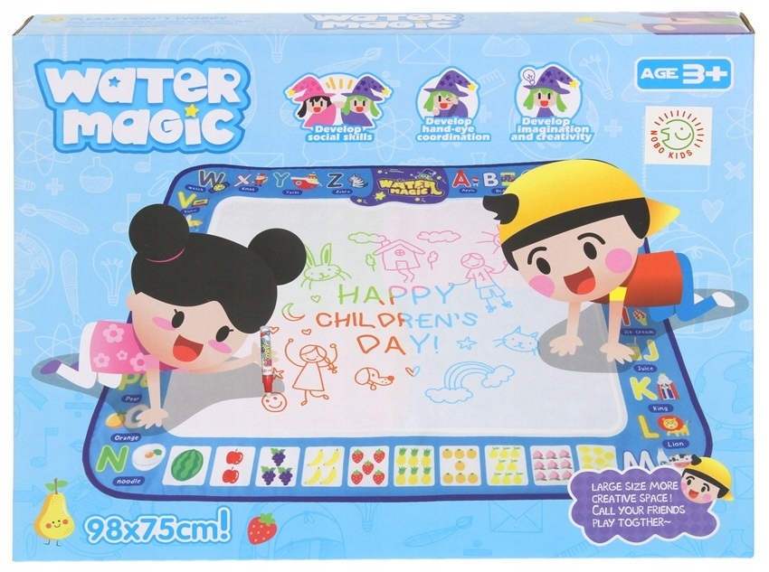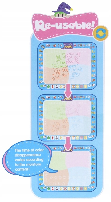 Водяний килимок — чудове рішення для нескінченного малювання. Завдяки водяному фломастеру ваша дитина зможе малювати та малювати скільки завгодно. Просто наповніть маркер водою і розфарбуйте все, що хочете. Коли малюнок висохне, малюнки зникнуть, і ви зможете малювати знову.