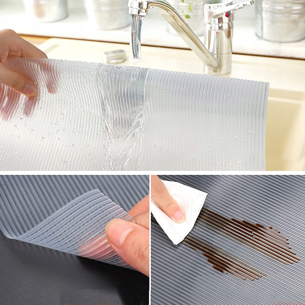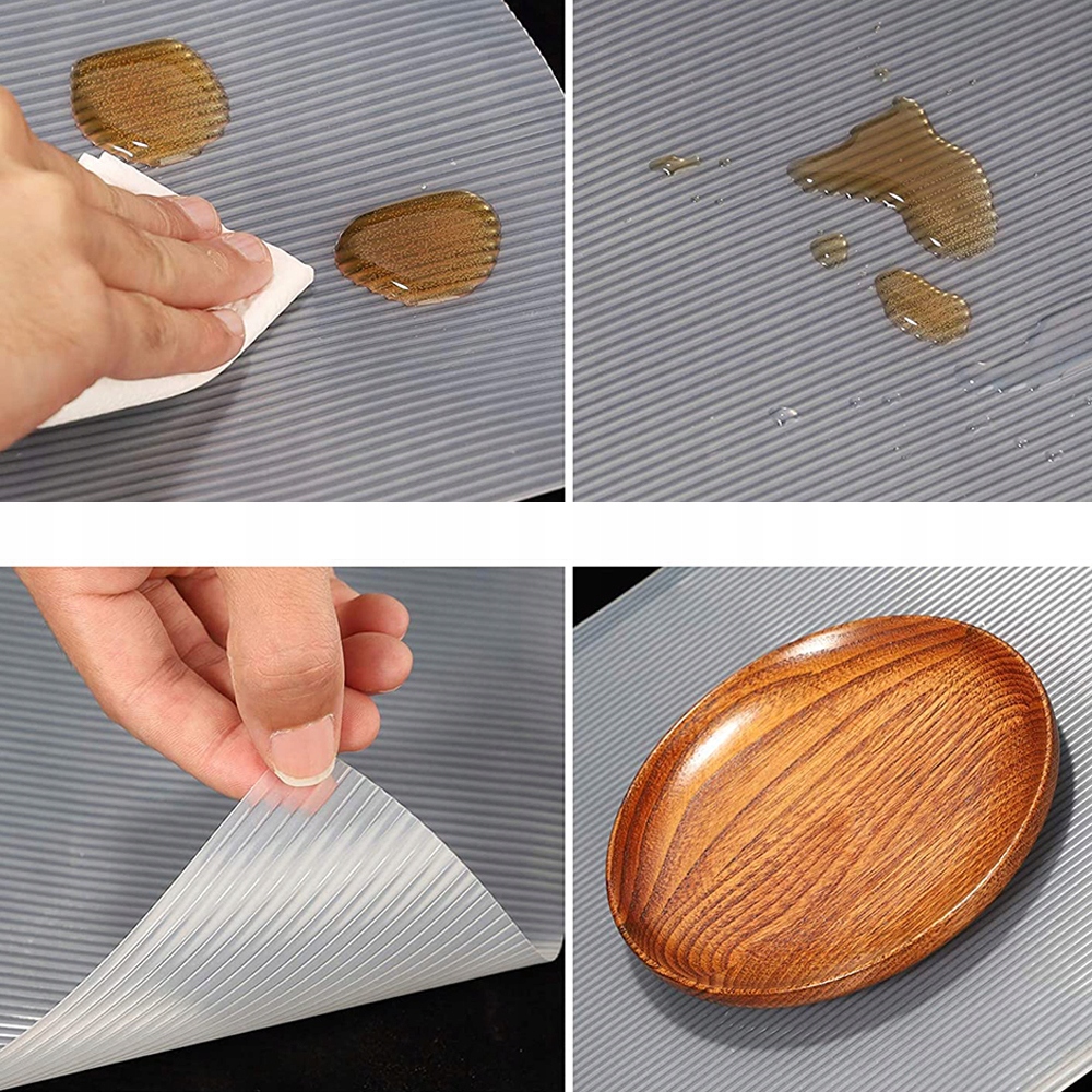 - 🍰 - 【Протиковзкий і антипригарний】: Наш килимок для ящиків EVA має текстурований візерунок із рельєфними смугами, тому делікатні речі не можуть ковзати. Антипригарна поверхня гарантує, що після заміни на полиці не залишиться липких слідів, а текстура м’яка, тому вона не скручується так часто, як інші твердіші.