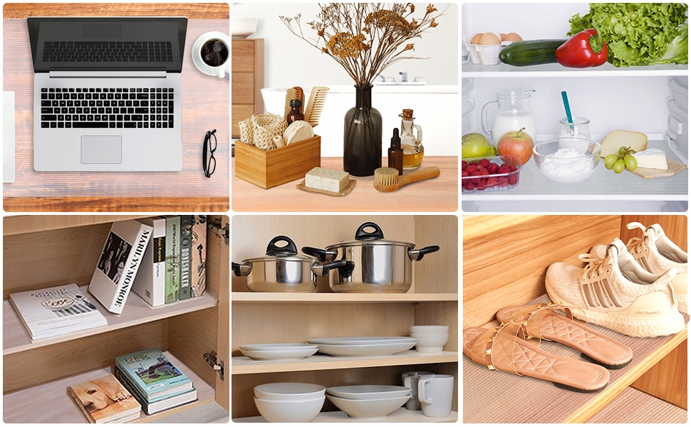 - 🍰 - 【Надзвичайний розмір】: b>45x610 см, надзвичайно великий розмір, придбайте нашу вставку для полиць, ви отримаєте довгу безперервну довжину та заощадите свій час. Просто виріжте вставку побутовими ножицями або лезом бритви та просто покладіть її в ящик.