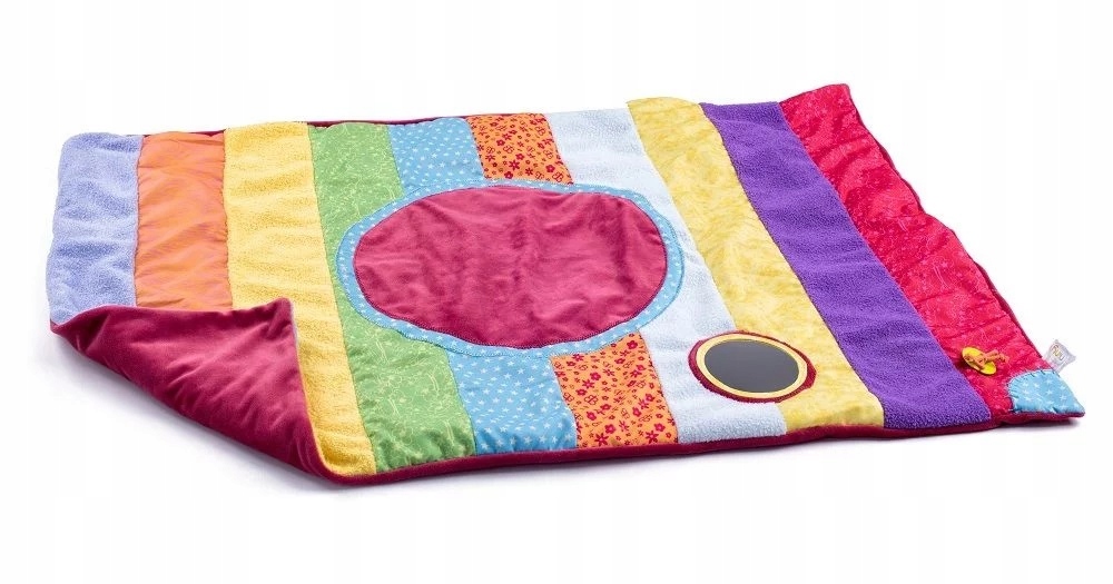 - досить товстий і м'який Килимок розміром 92 x 65 см для лежання. Має два шари - один м'який плюш, а другий - це зшиті між собою три види тканини, що відрізняються на дотик, кольором і малюнками. На килимку також є дзеркало та кнопка з петелькою