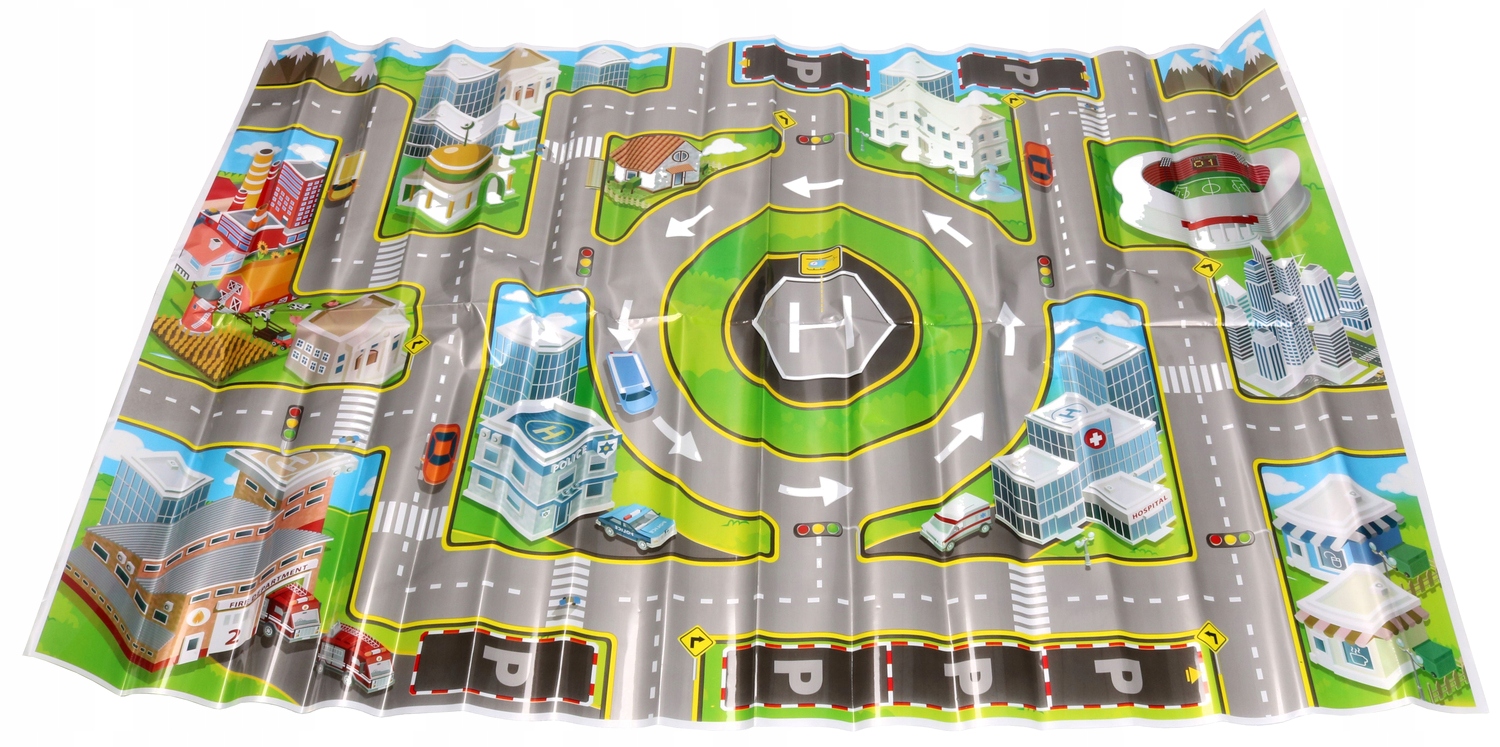 Супер килимок із вулицями, кільцевим транспортом, надрукованими будівлями, включаючи звичайні будівлі, а також лікарню, поліцію, пожежну бригаду чи стадіон.. ..