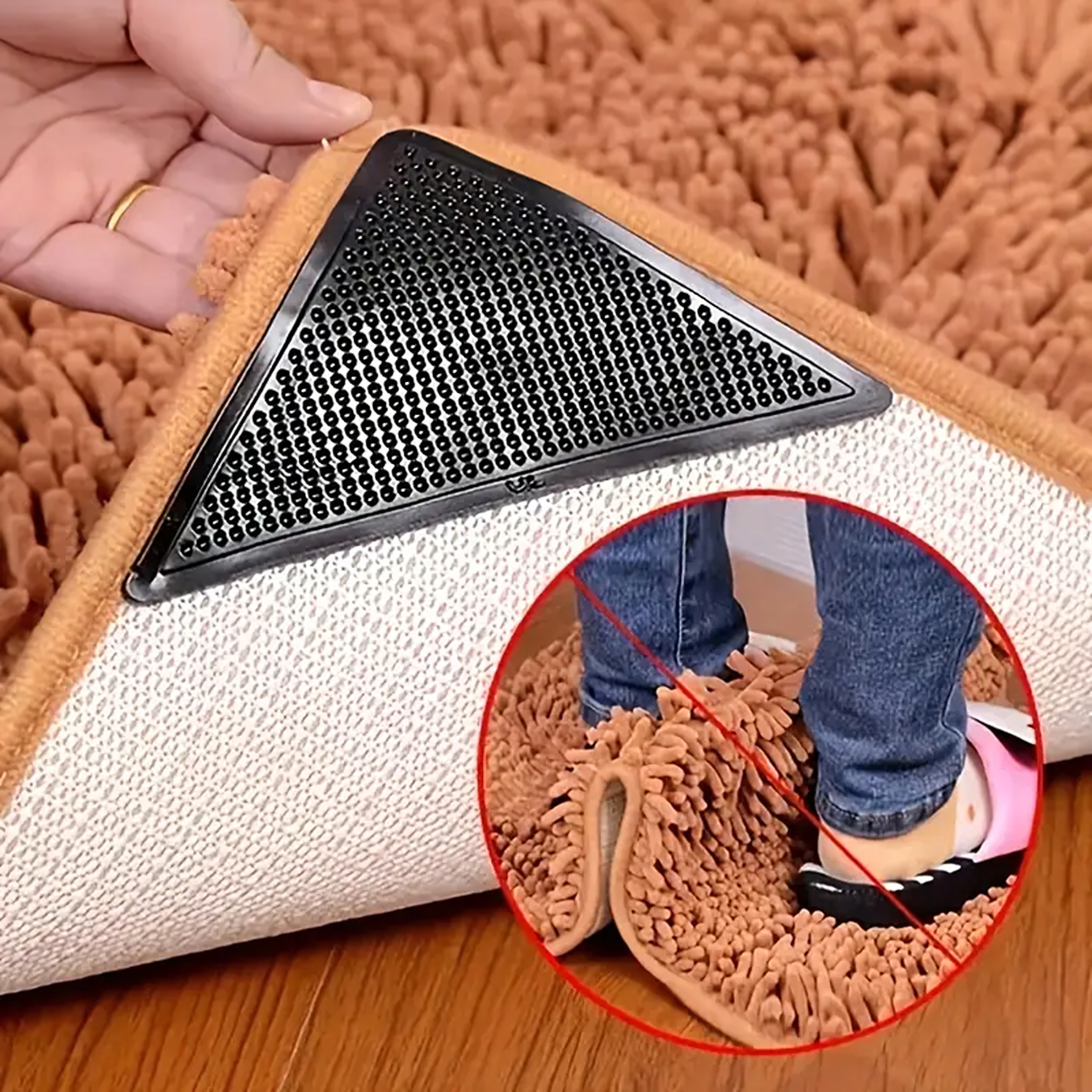 8 × Недокилі Наклейки під килимком - безпечний та стабільний будинок! набір з 8 накладок, які ефективно запобігають руху килимів та килимів. простий у встановленні, невидимі після введення, повторного використання . Ідеально підходить для будь -якого типу підлоги та килима - Збільшення безпеки будинку , особливо з дітьми, літнім та тваринами.
