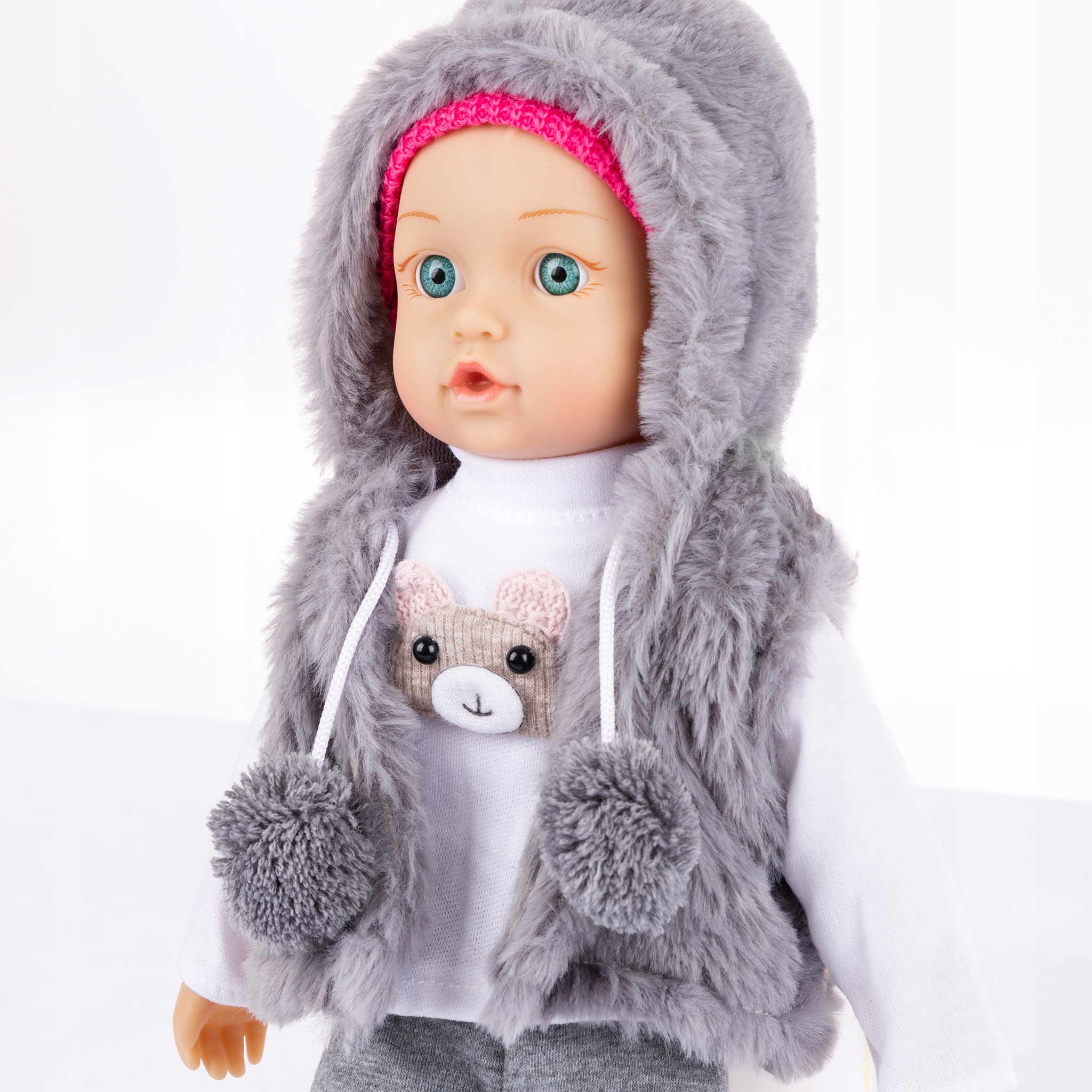 В комплект входить:шапочка, майка, кофточка, штанці, носочки. Одяг можна легко зняти та випрати, тому ляльку легко підтримувати в чистоті.