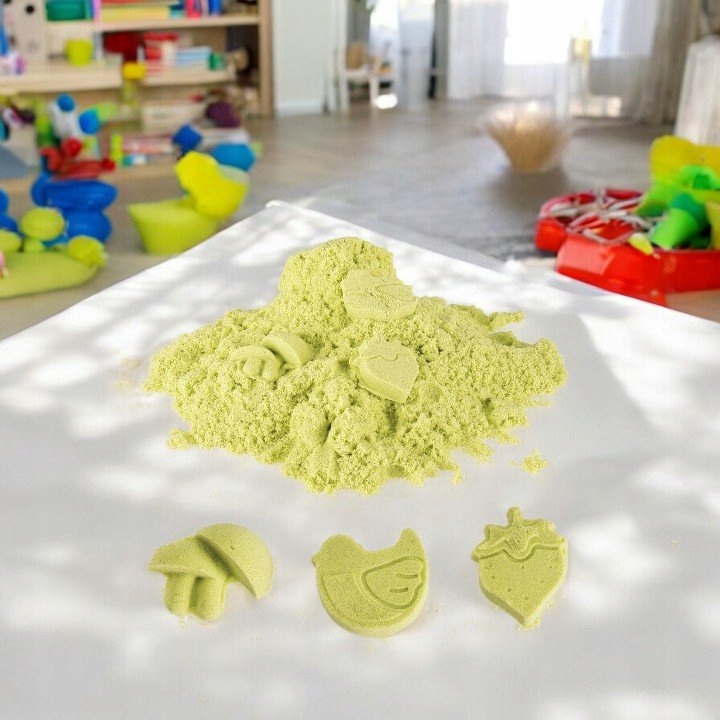 🏖️ Кінетичний пісок - ідеально підходить для гри вдома! Тепер ваша дитина може мати власну пісочницю в кімнаті, не турбуючись про безлад і прибирання! Кінетичний пісок є чудовою альтернативою класичному піску — він не так легко розсипається, а гра з ним чиста й безпроблемна.