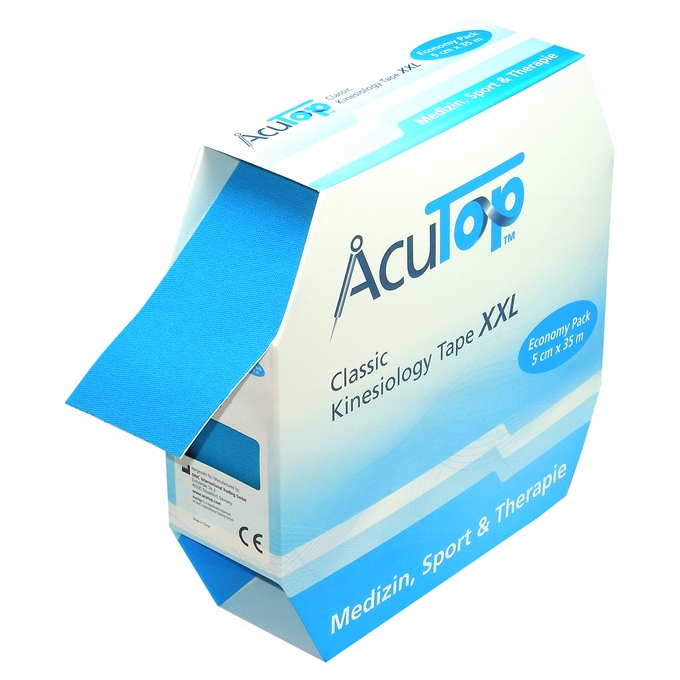 Тейпи AcuTop мають унікальну хвилеподібну форму, яка стала стандартом у сфері терапевтичного тейпування. Вони забезпечують неінвазивний та ефективний метод відновлення нервово-м’язової системи, одночасно покращуючи крово- та лімфообіг, заспокоюючи біль і забезпечуючи комфорт і стабілізацію, необхідні під час терапії пацієнта. Ширина 5 см дозволяє вирізати більшість аплікацій. Його можна легко використовувати для всіх чотирьох найпопулярніших методів кінезіотейпування («I», «Y», «X», «F»). Ця стрічка ідеально підходить для використання на всьому тілі, а спеціальні лінії полегшують розрізання та підготовку до нанесення.