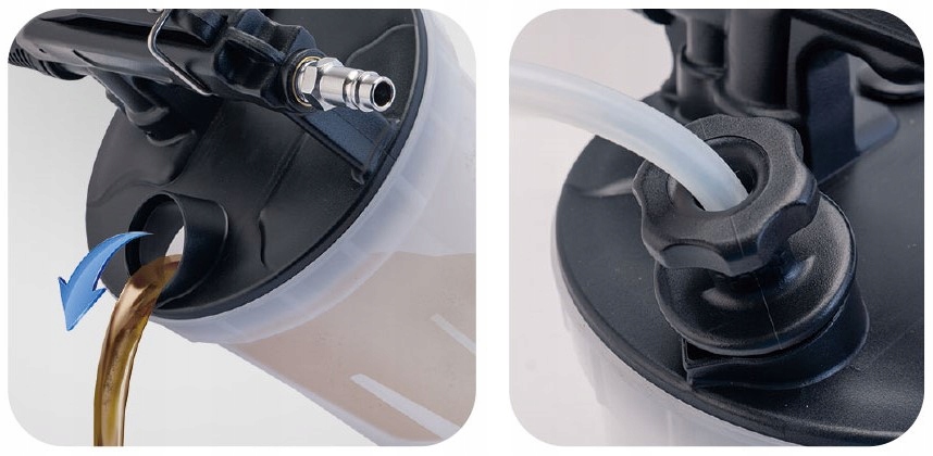 Пристрій дозволяє одній людині замінити гальмівну рідину протягом кількох хвилин без ризику потрапляння повітря в систему. Прилад працює від пневматичної установки. Завдяки можливості блокування курка немає необхідності постійно тримати пристрій. Інструмент оснащений глушником, що знижує шум, що створюється при роботі пристрою, запобіжним клапаном, що дозволяє скинути тиск всередині бака, і силіконовим шлангом, стійким до тривалого впливу гальмівної рідини. З одного боку кабель оснащений швидким роз'ємом, що дозволяє підключати його до бака, а з іншого боку - універсальний гумовий адаптер, адаптований для підключення до гальмівної системи. Пристрій ідеально підходить для професійних майстерень, автосервісів, а також в домашньому гаражі.