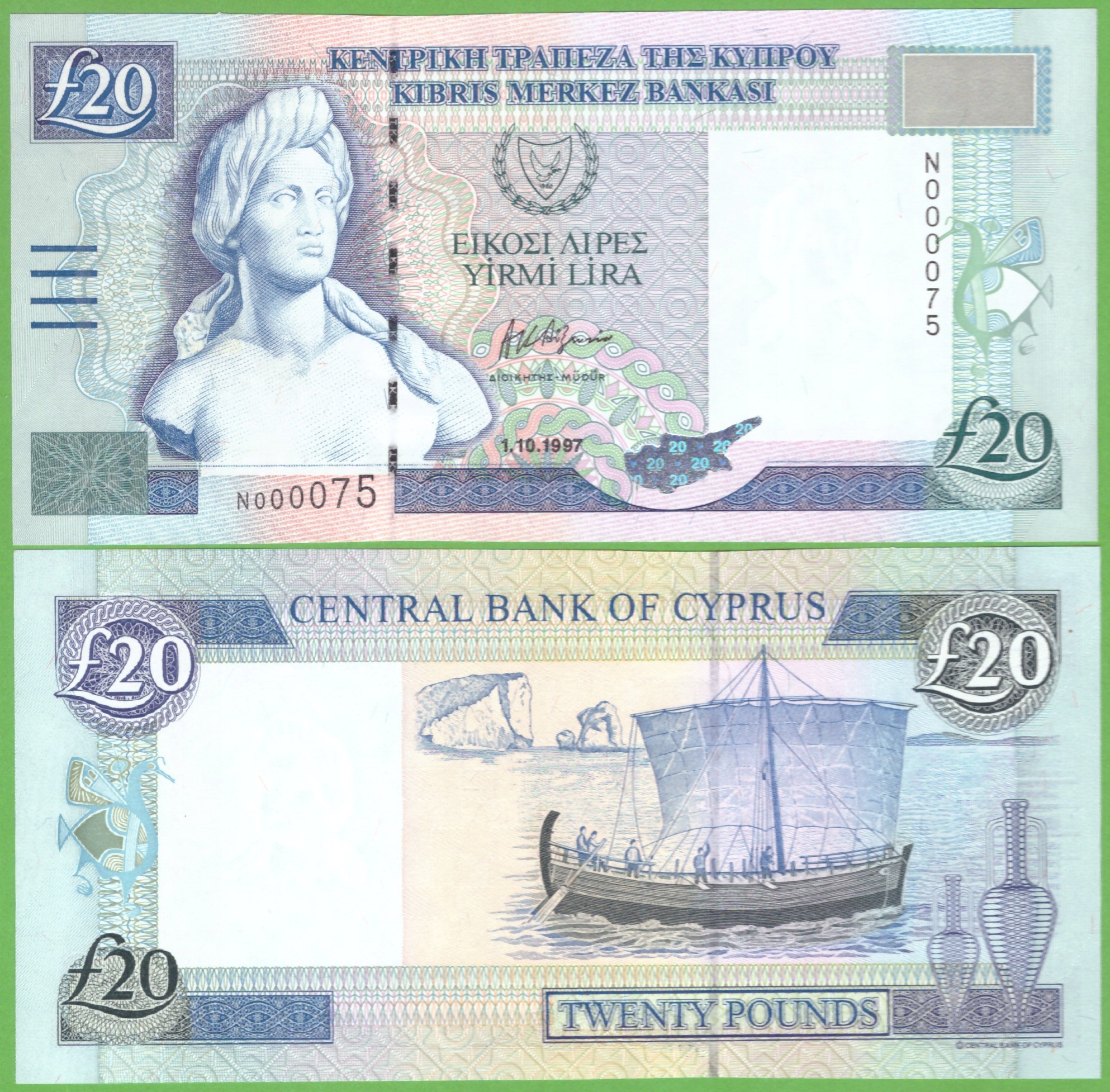 КІПР 20 ФУНТІВ 1997 P-63a НОМЕР UNC 000075