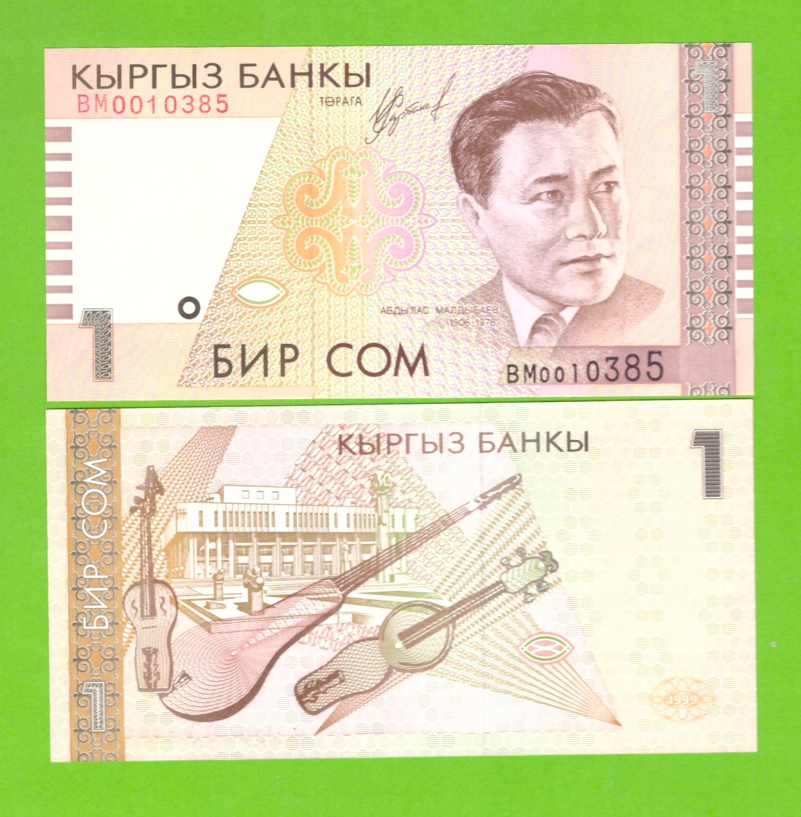 КИРГИСТАН 1 СОМ 1999 P-15 UNC