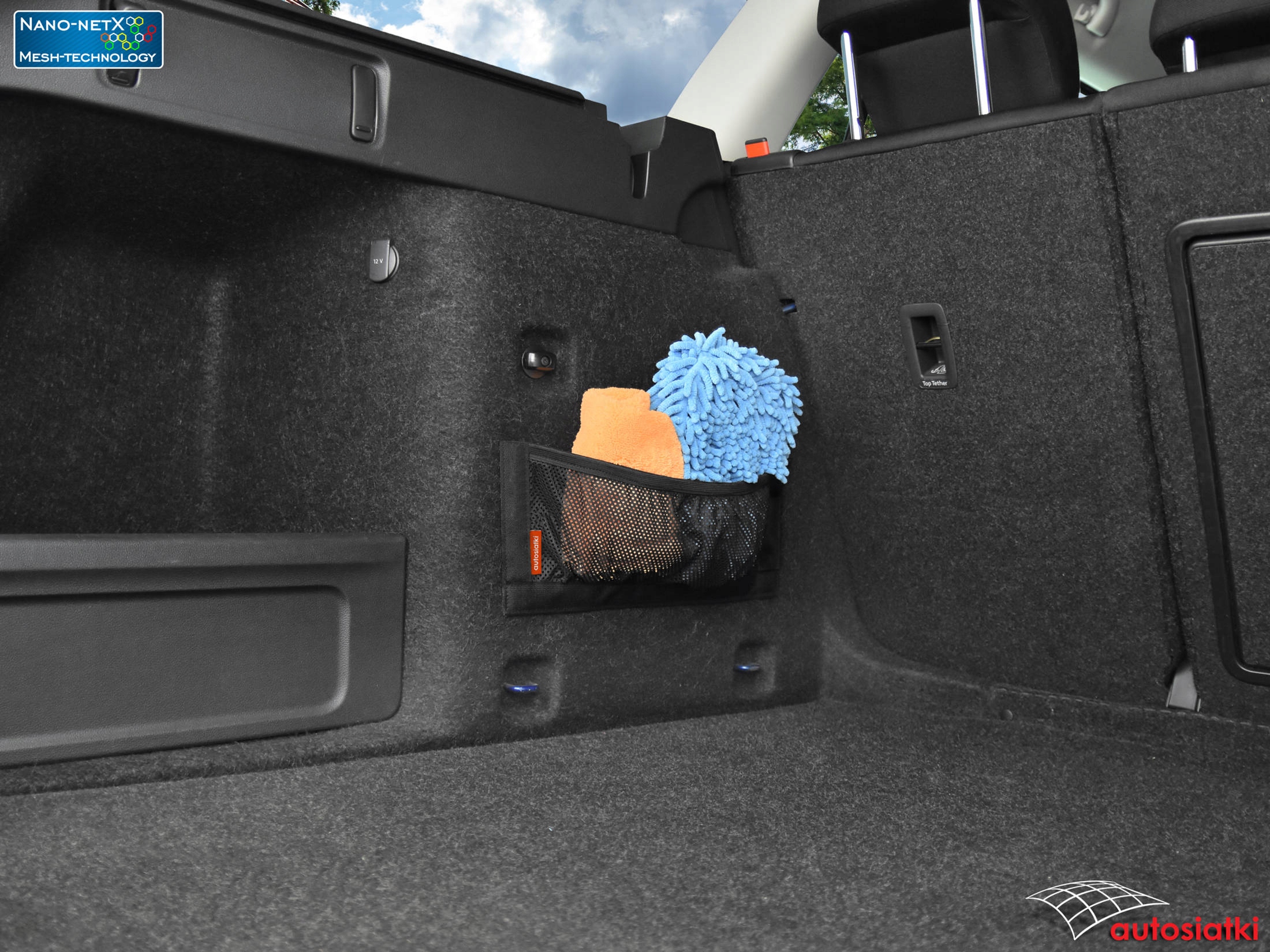 Це міцна сітка Nano-NetX, оздоблена липучкою знизу та з боків. Покритий гумою зверху для захисту аксесуарів від переміщення. Використаний матеріал Mesh-Technology захищає навіть дрібні предмети від випадання. Кишеня кріпиться до килимка в багажнику або салоні автомобіля.